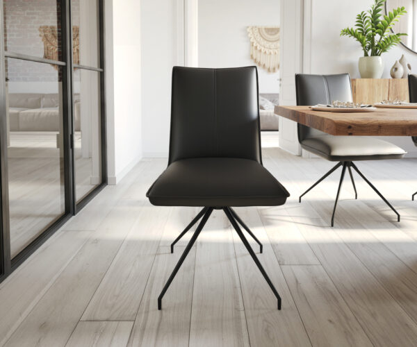 Lelio étkezőszék valódi bőr fekete – DELIFE szék rendszer