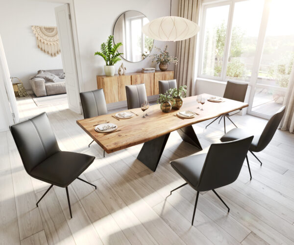 A különleges kereszt láb formája lágyan kúposan ívelt, lefelé hajló lábakkal, így igazi figyelemfelkeltő darab. Négy lábának köszönhetően a lábazat különösen stabil, praktikus visszahúzó funkcióval és 180 fokban forgatható kialakítással páratlan kényelmet nyújt.