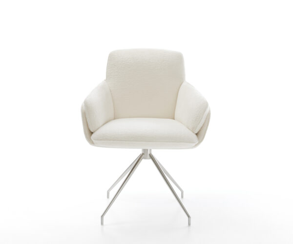 Étkezőszék Luan-Flex karfás bouclé puha bézs kereszt láb kúpos rozsdamentes acél