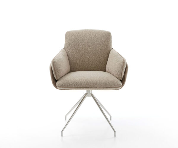 Étkezőszék Luan-Flex karfás vegyes anyagok sötét bézs kereszt láb kúpos rozsdamentes acél 180° forgatható
