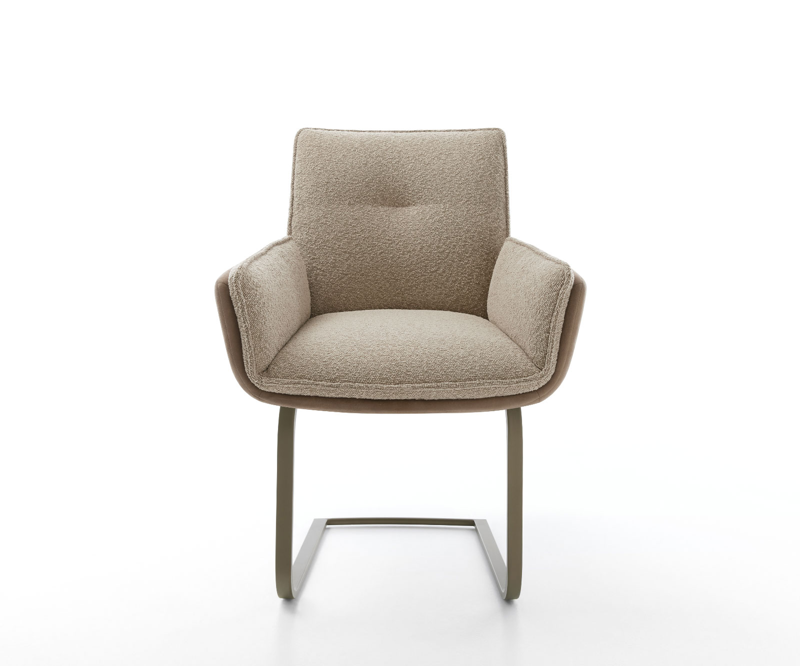 Egy izgalmas anyagkombináció, melynek külső oldala mikroszálas, belső része pedig bouclé anyagból készült, valódi must-have darabbá teszi az étkezőszéket minden ízlésesen berendezett étkezőben. Két anyag használata vizuálisan különösen vonzó, akár egyedi darabként, akár ülőgarnitúraként.