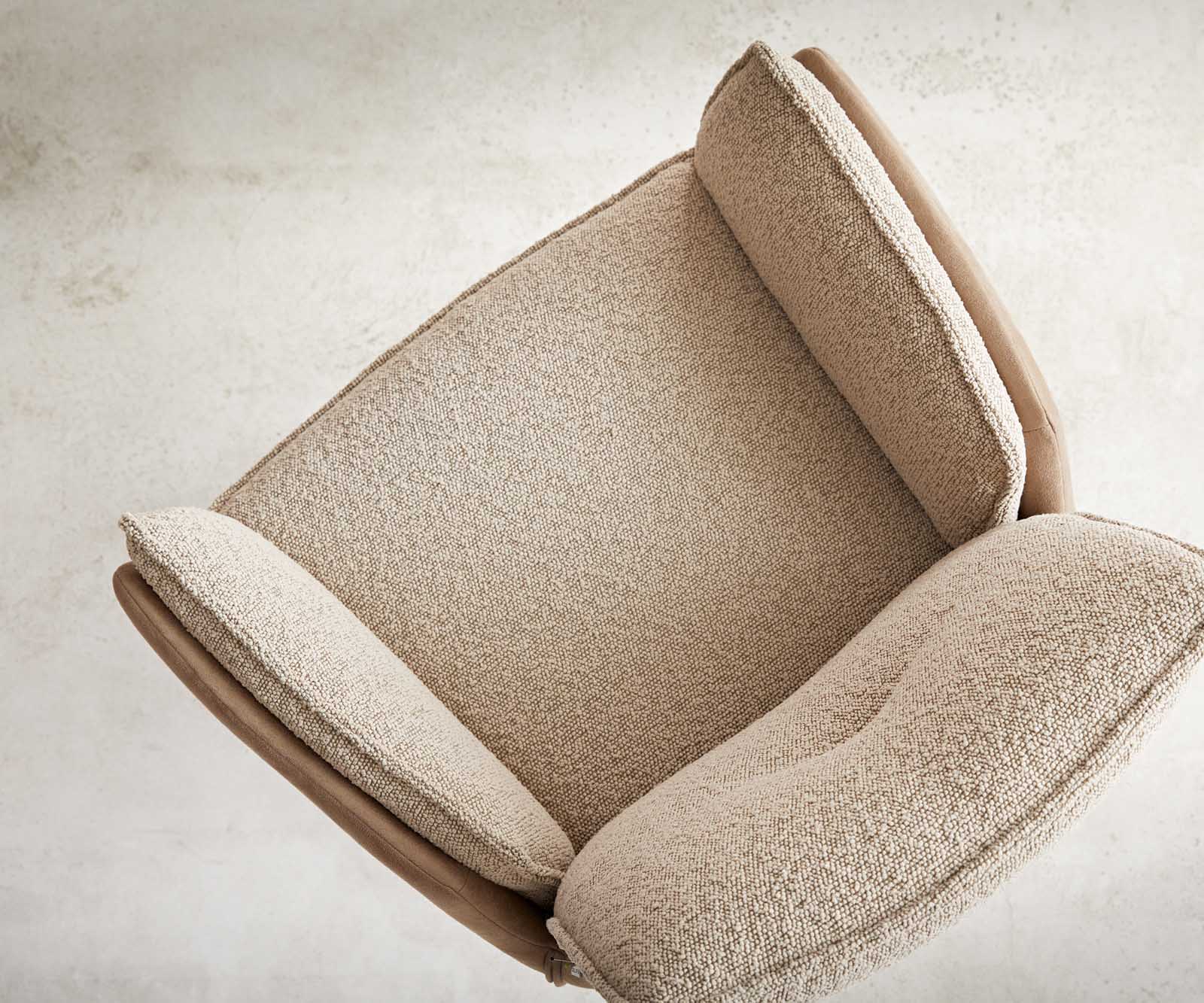 Egy izgalmas anyagkombináció, a külső oldalon mikroszálas és bouclé anyag teszi az étkezőszéket valódi must-have darabbá minden ízlésesen berendezett étkezőben. A két anyag használata vizuálisan különösen vonzó, akár egyedülálló darabként, akár ülőgarnitúraként.