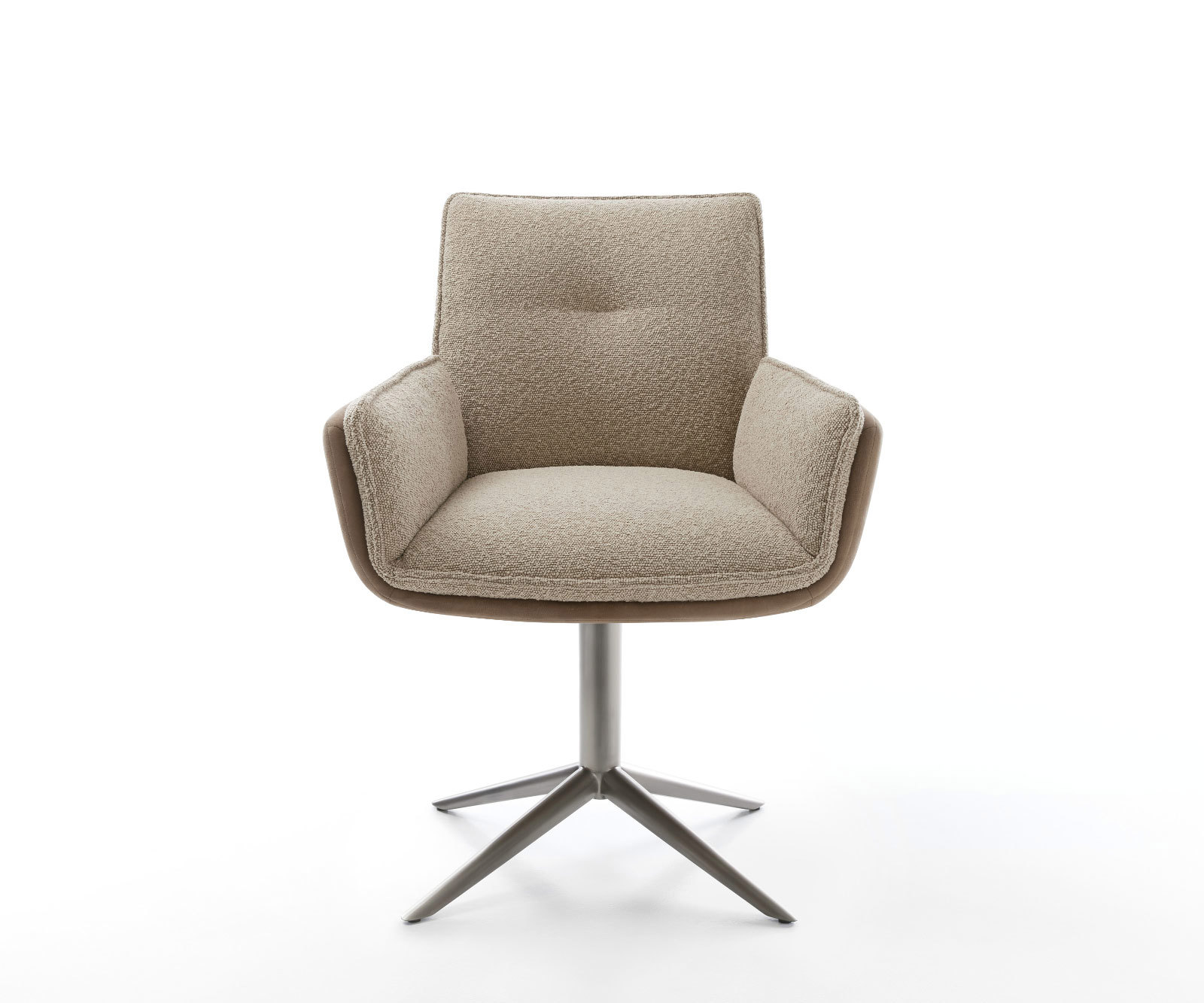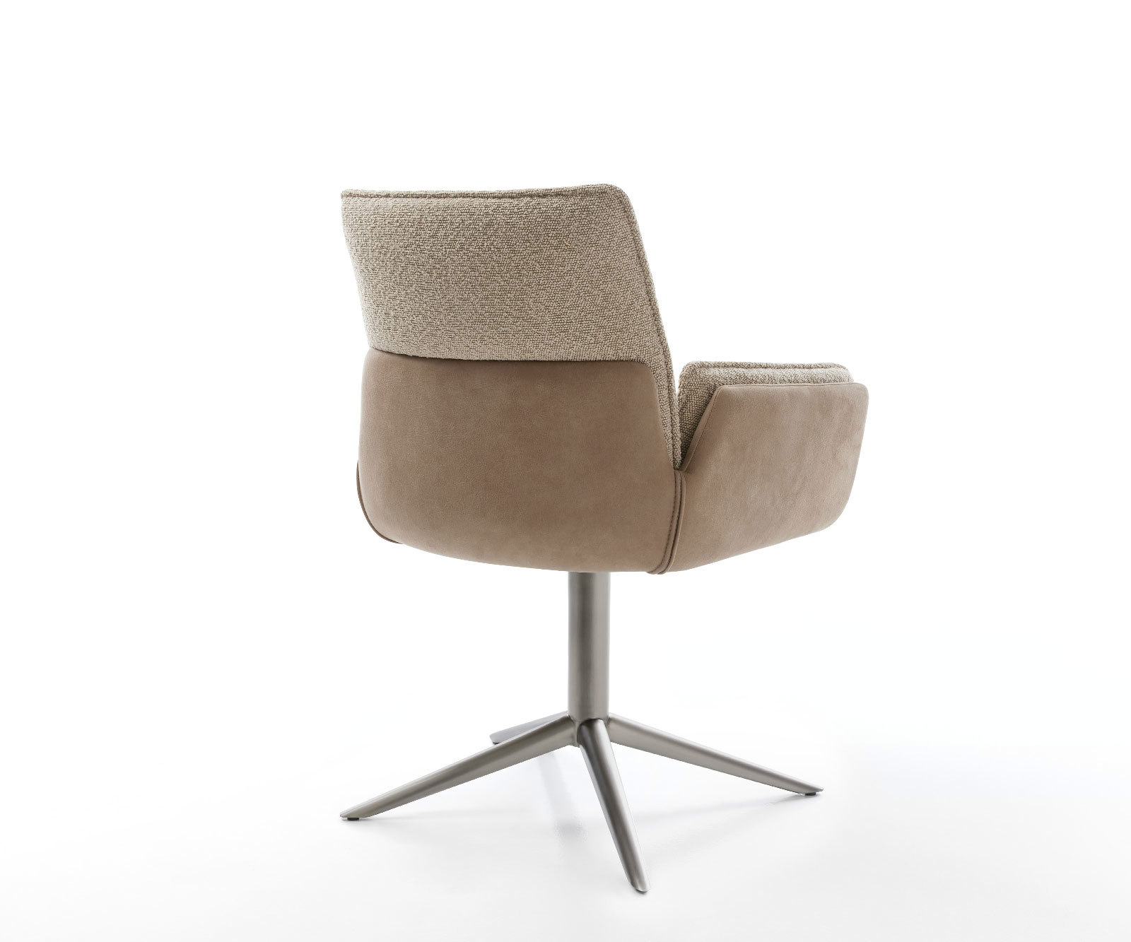 Egy izgalmas anyagkombináció, a külső oldalon mikroszálas és bouclé borítás teszi az étkezőszéket valódi must-have darabbá minden ízlésesen berendezett étkezőben. A két anyag használata vizuálisan különösen vonzó, akár egyedi darabként, akár ülőgarnitúraként.