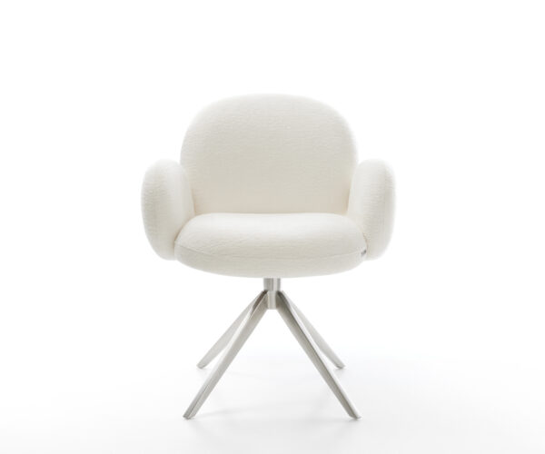 Étkezőszék Nube-Flex karfás bouclé puha bézs kereszt láb széles rozsdamentes acél 360° forgatható billenő zsákrugós matrac