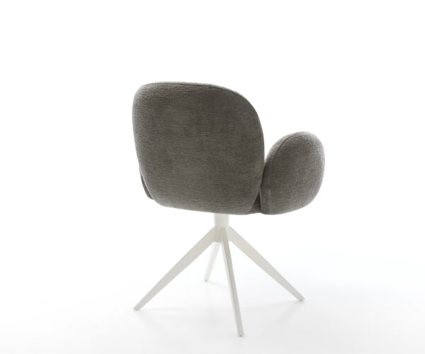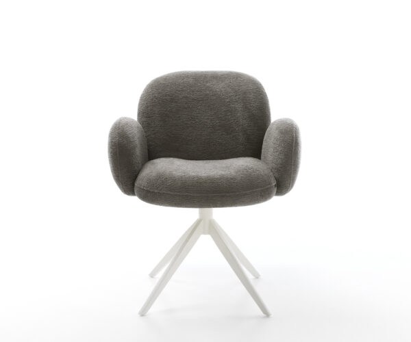 Ez a szék magas minőségű bouclé huzattal rendelkezik meleg, sötét bézs (schlamm) árnyalatban. Az enyhe struktúra és a nyugodt szín modern, otthonos kisugárzást ad a bútornak – ideális az étkezőbe vagy az olvasósarokba.