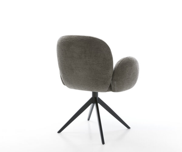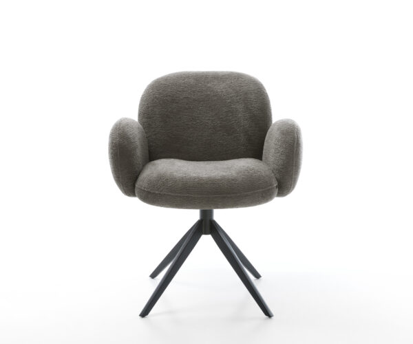 Étkezőszék Nube-Flex karfás bouclé puha sötét bézs kereszt láb széles fekete 360° forgatható billenő zsákrugós matrac