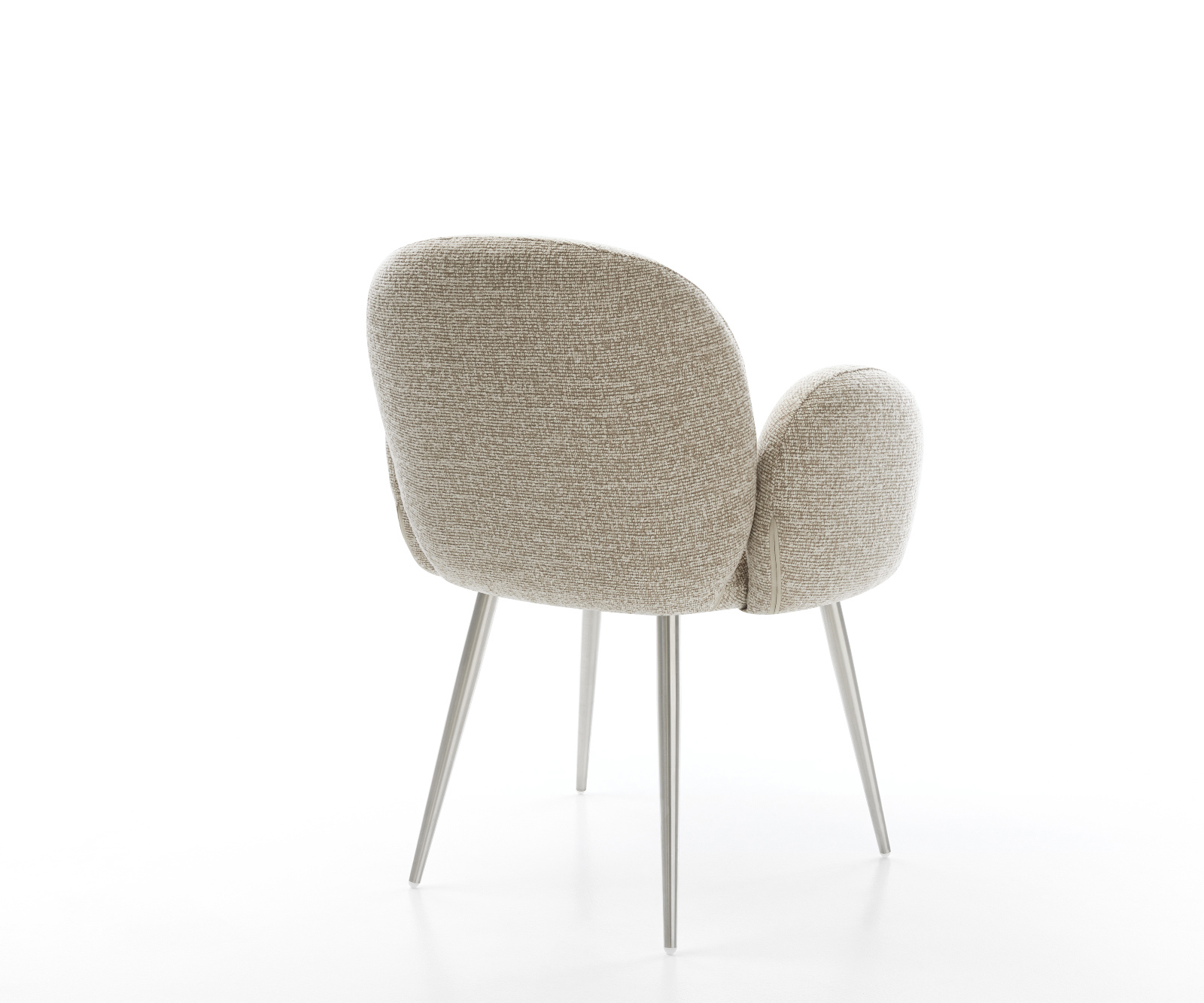 A modern, lekerekített Nube-Flex étkezőszék karfákkal igazi életstílust sugároz az ebédlőjében, és extra vastag, kiváló minőségű zsákrugós kárpitozásának köszönhetően páratlan kényelmet nyújt ülés közben. Az ergonomikus, kagyló formájú design kíméli a hátát. Az ülőfelület, háttámla és karfák vizuális elkülönítése egyedi megjelenést kölcsönöz a Nube-Flexnek, amely így valódi design-kiemelkedővé válik.