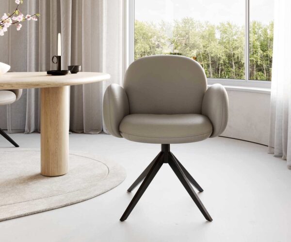 Étkezőszék Nube-Flex karfás valódi bőr sötét bézs kereszt láb széles fekete 360° forgatható zsákrugós