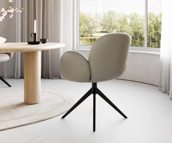 Kiváló minőségű, valódi bőr stílusos sötét bézs (schlamm) árnyalatban, amely szürke-barna árnyalatokkal gazdagodik, igazi különlegességgé varázsolja az étkezőszéket, és kifinomult, elegáns légkört teremt az étkezőben.