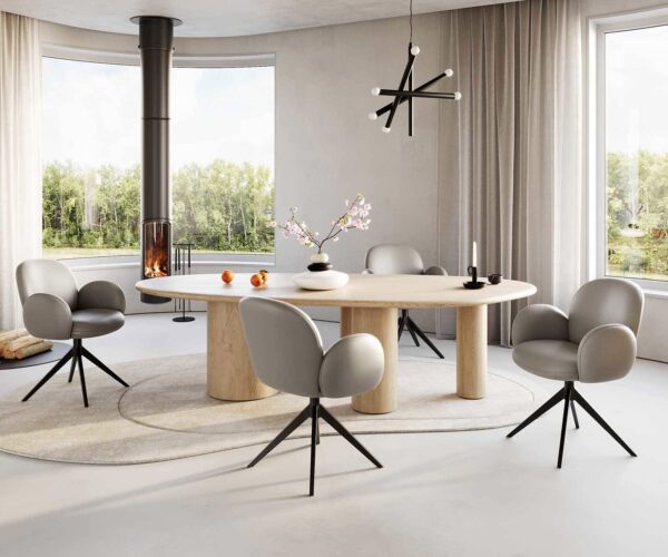 A modern, lekerekített Nube-Flex étkezőszék karfákkal igazi életstílust sugároz az étkeződban, és extra vastag, kiváló minőségű zsákrugós töltetének köszönhetően páratlan kényelmet nyújt ülés közben. Az ergonomikus, kagylóformájú design kíméli a hátadat. Az ülőfelület, háttámla és karfák optikai elkülönítése egyedi megjelenést kölcsönöz a Nube-Flexnek, amely a széket valódi design-kiemeléssé teszi.