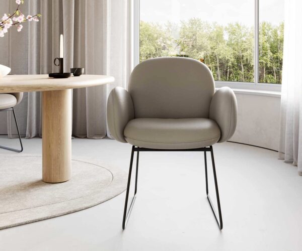 Nube étkezőszék karfákkal valódi bőrben, sötét bézs – DELIFE szék rendszer