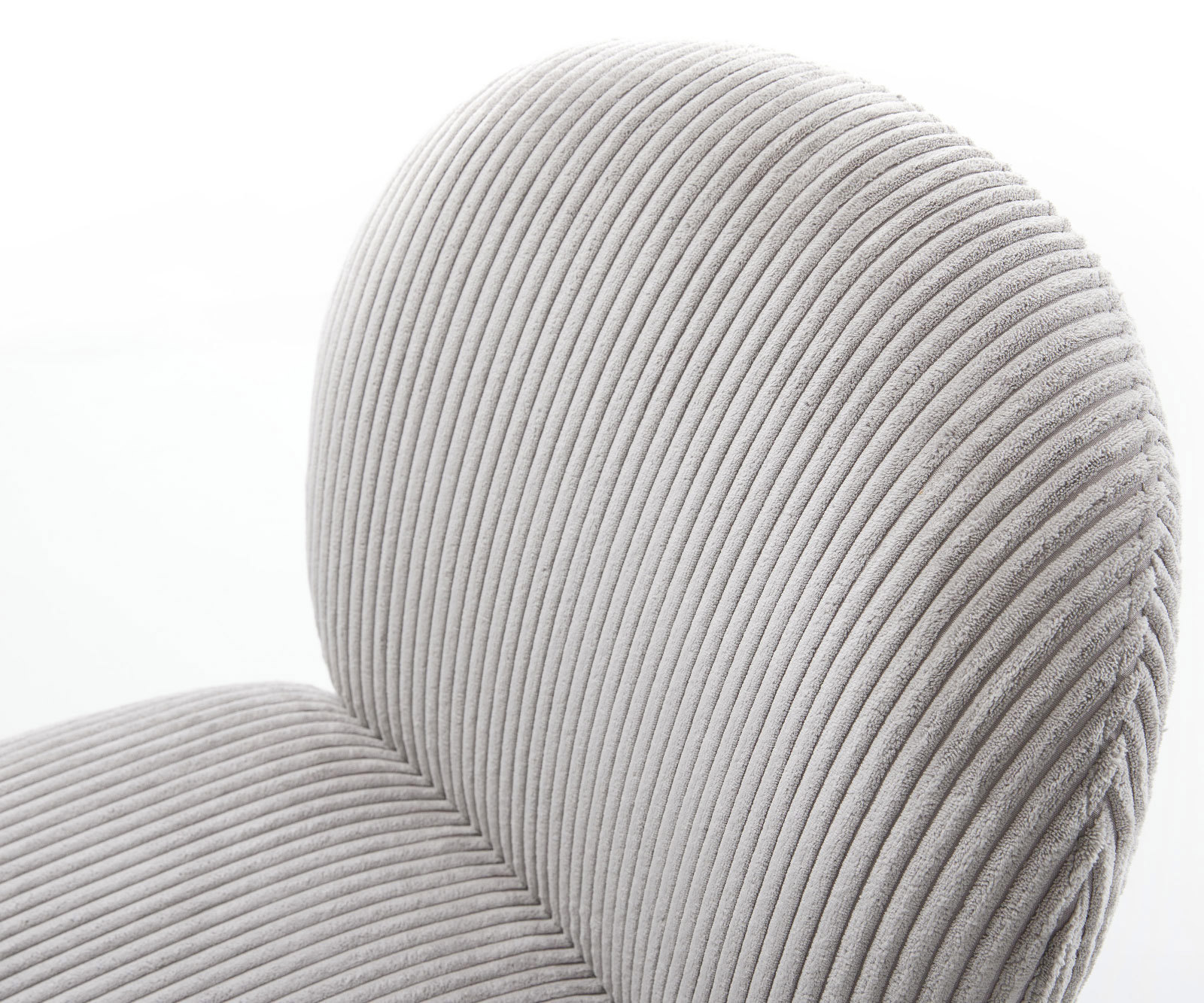 A használt kordbársony anyag különösen trendi, kellemes tapintású, könnyen ápolható és elegáns ezüstszürke színben tündököl.