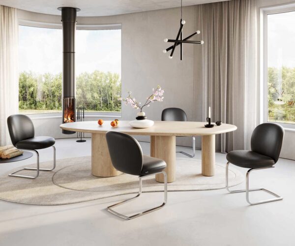 A lapos lábazat minden ülőkének kellemesen könnyed és elegáns megjelenést kölcsönöz. A tipikus hintamechanizmusnak köszönhetően a szabadon lengő szék különösen gerinckímélő és kíméletes ülést biztosít.