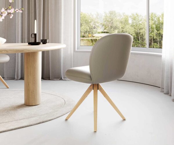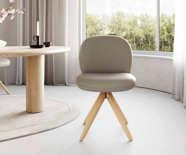 Étkezőszék Nube-Flex valódi bőr sötét bézs fa láb szögletes természetes 180° forgatható zsákrugós