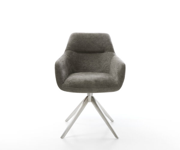 Ez az étkezőszék kiváló minőségű bouclé kárpittal rendelkezik meleg sötét bézs (schlamm) árnyalatban. A finom struktúra és a nyugodt szín modern, otthonos kisugárzást kölcsönöz a bútornak – ideális az étkezőbe vagy az olvasósarokba.