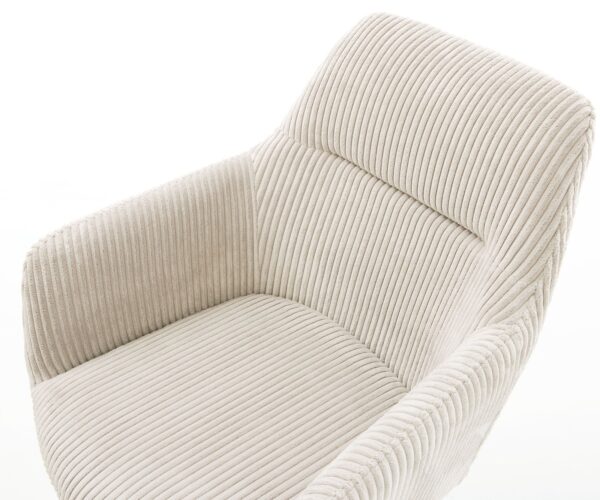 A szék borítása divatos kordbársonyból készült, meleg bézs árnyalatban. Különösen kellemes a bőrnek, ugyanakkor rendkívül strapabíró és könnyen tisztán tartható.