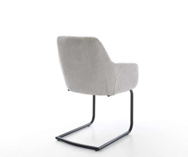 A használt kordbársony anyag különösen trendi, kellemes tapintású, könnyen ápolható és elegáns ezüstszürke színben tündököl.