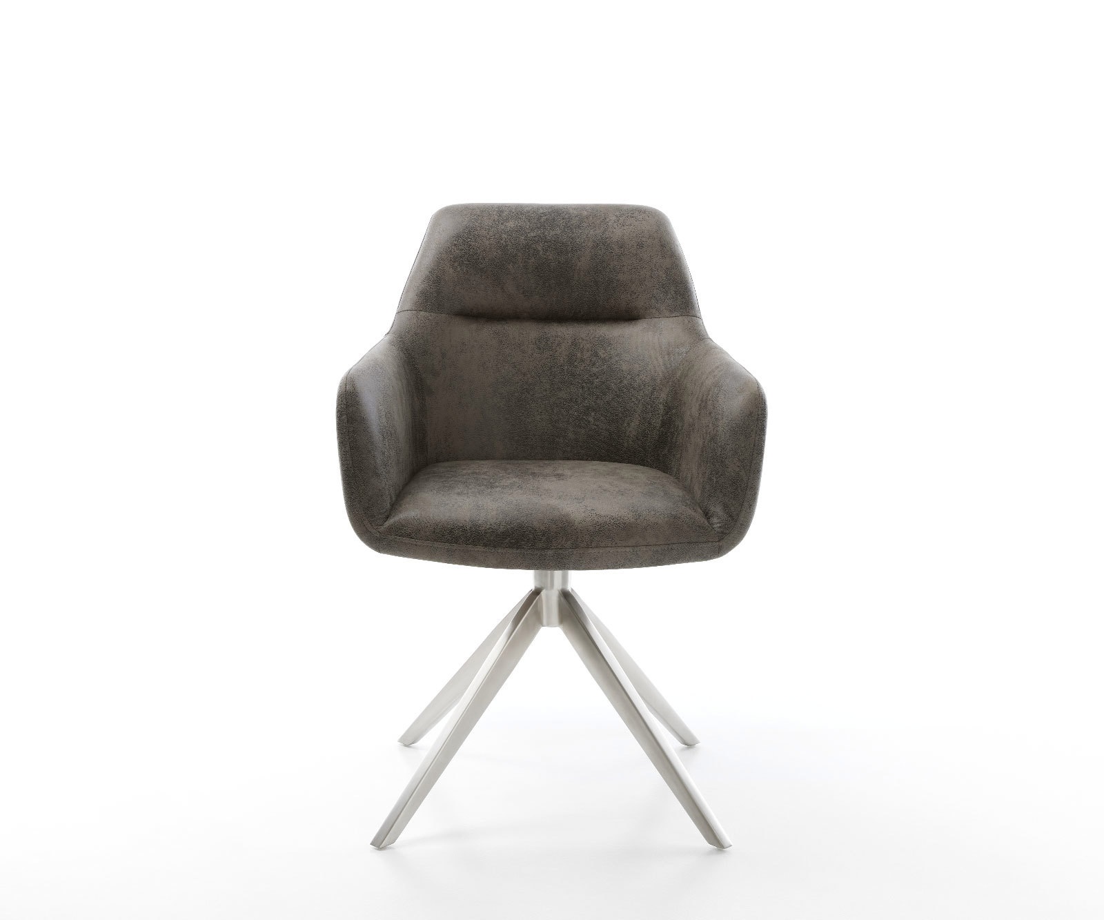 Étkezőszék Pejo-Flex mikroszálas szürke vintage kereszt láb széles rozsdamentes acél 360° forgatható billenő funkció zsákrugós matrac