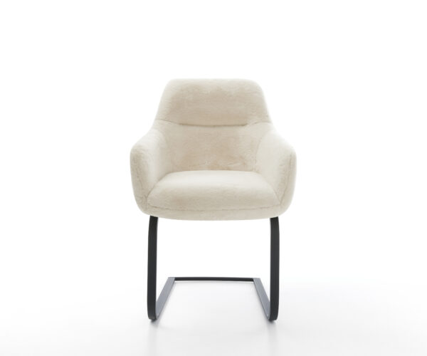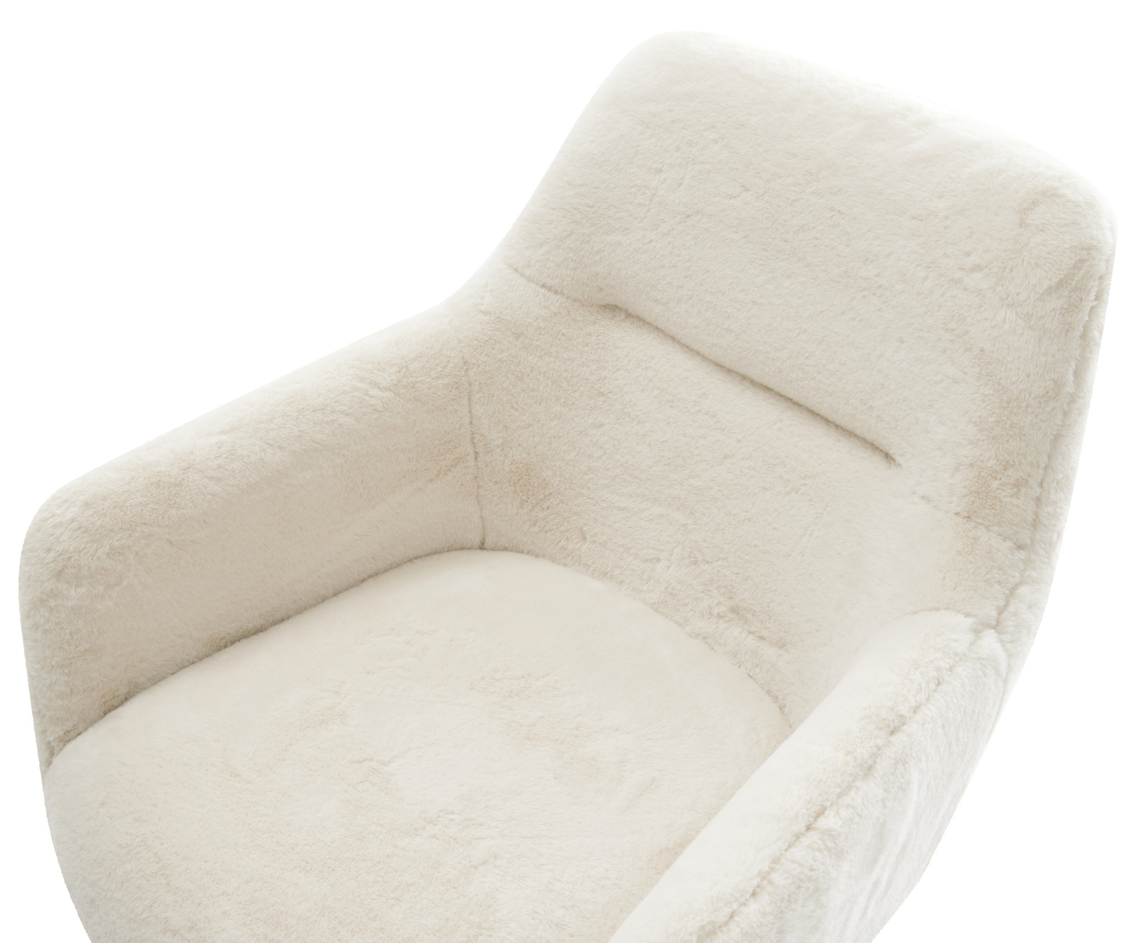 A nemes plüss huzat lágy krémfehér színben különösen elegáns kisugárzást kölcsönöz a széknek. A puha tapintás maximális üléskomfortot nyújt – tökéletes modern étkező- és nappali terekhez, magas minőségű berendezéssel.