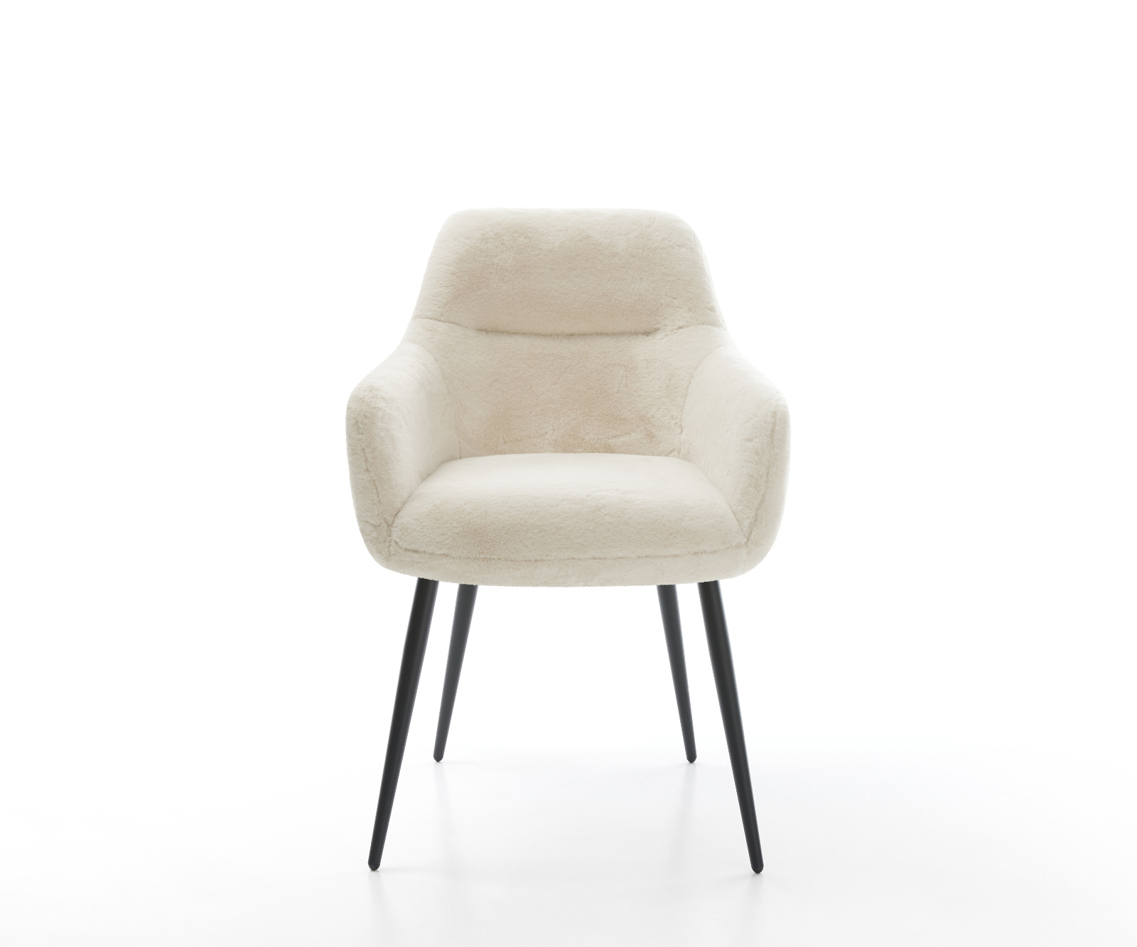 A nemes plüss huzat lágy krémfehér színben különösen elegáns kisugárzást kölcsönöz a székre. A puha tapintás a legmagasabb üléskényelmet nyújtja – tökéletes modern étkező- és nappali terekhez, magas minőségű berendezéssel.