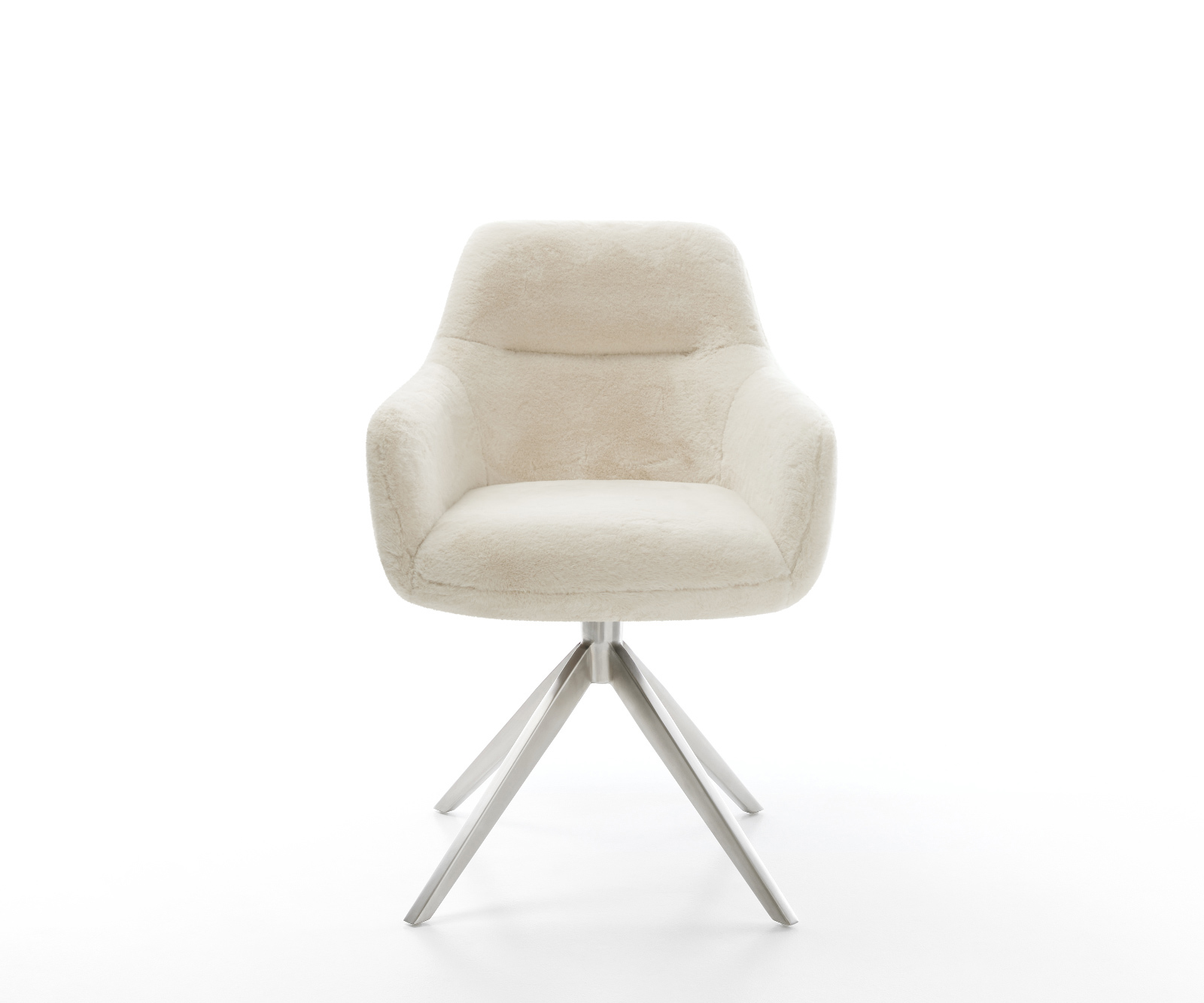 Étkezőszék Pejo-Flex plüss krémfehér kereszt láb széles rozsdamentes acél 360° forgatható billenő zsákrugó