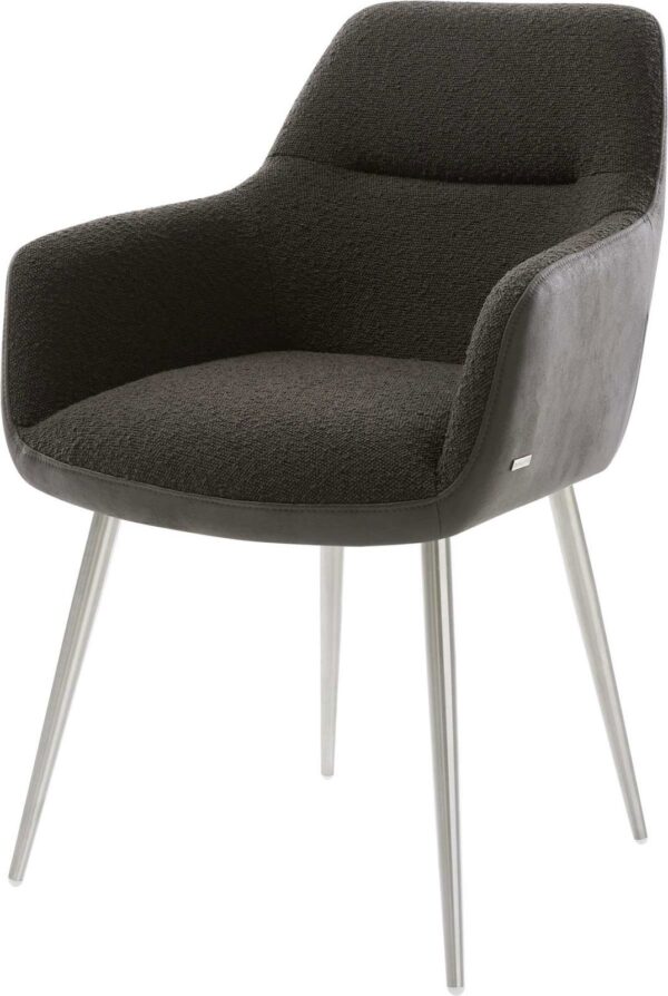 A grafitszínű, rozsdamentes acélból készült székkeret a modern dizájnt magas stabilitással ötvözi. Tiszta vonalvezetése és hűvös, fémes felülete stílusos választássá teszi bármilyen étkező- vagy nappali térbe. A rozsdamentes acél nemcsak tartós, hanem könnyen ápolható is, így hosszú távú használatot tesz lehetővé nagy erőfeszítés nélkül. Elegáns grafitszíne révén a keret könnyedén illeszthető különböző berendezési stílusokhoz, miközben diszkrét, mégis markáns hangsúlyt ad.