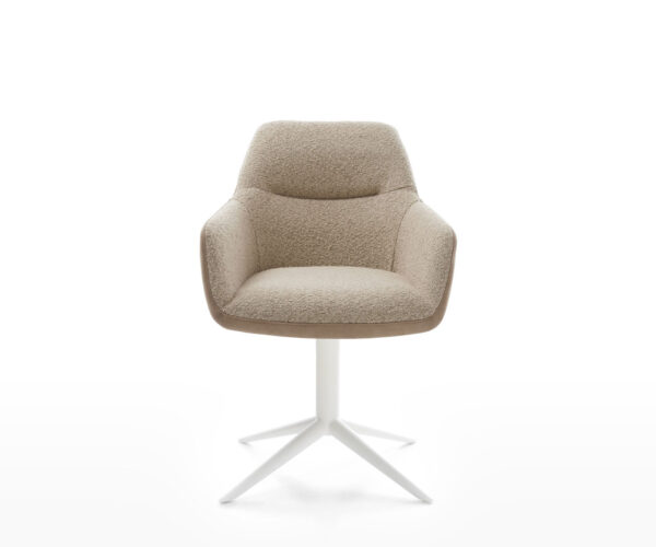 Egy izgalmas anyagkombináció, melynek külső része mikroszálas, belső része pedig bouclé anyagból készült, valódi must-have étkezőszékké teszi ezt a darabot minden ízlésesen berendezett étkezőben. A két anyag használata vizuálisan különösen vonzó, akár egyedileg, akár ülőgarnitúraként alkalmazva.