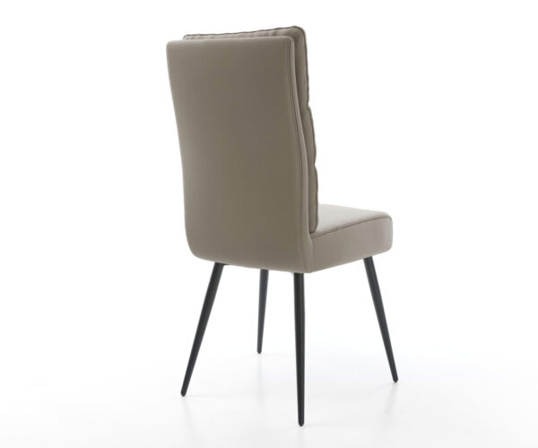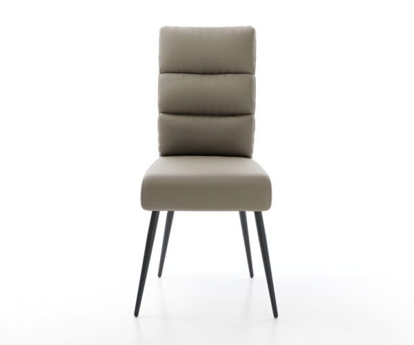 Kiváló minőségű, valódi bőr stílusos sötét bézs (schlamm) árnyalatban, amely szürke-barna árnyalatokkal tűnik ki, igazi különlegességgé teszi az étkezőszéket, és kifinomult, elegáns légkört kölcsönöz az étkeződnek.