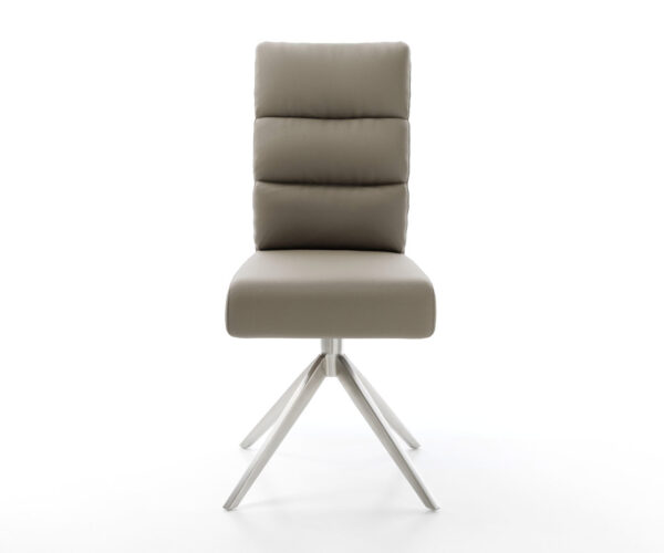 Kiváló minőségű, valódi bőr stílusos sötét bézs (schlamm) árnyalatban, amely szürke-barna árnyalatokkal tűnik ki, igazi különlegességgé teszi az étkezőszéket, és kifinomult, elegáns légkört kölcsönöz az étkezőnek.