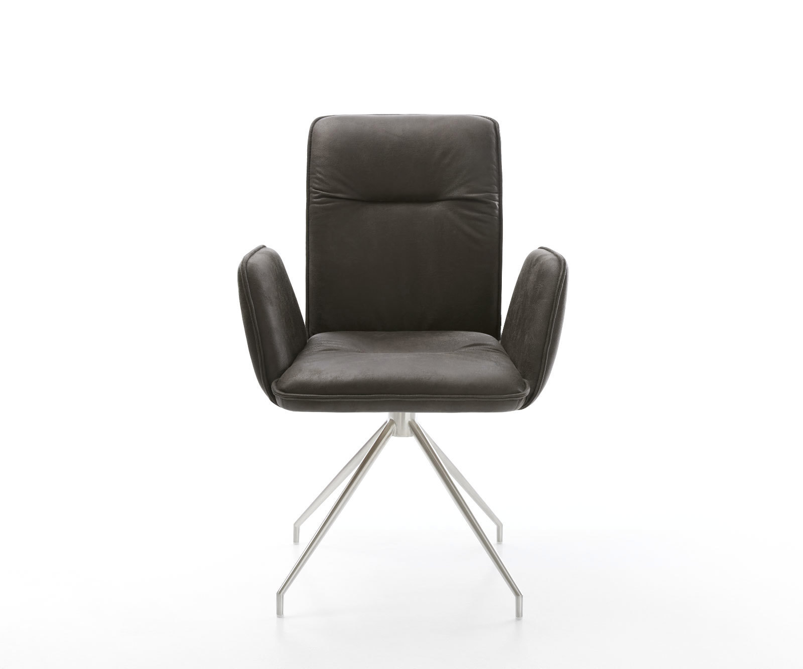 A különleges kereszt láb finoman kúpos, ívelt formájával és lefelé hajló lábaival igazi látványosság. Négy lábának köszönhetően a lábazat különösen stabil, praktikus visszahúzó funkcióval és 180 fokban forgatható, így páratlan kényelmet nyújt.