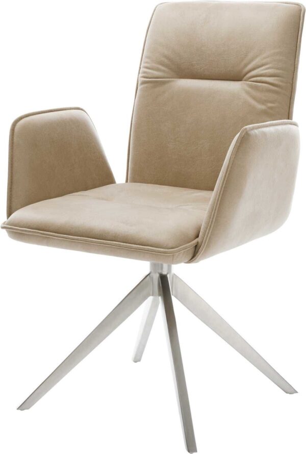 A Vinja étkezőszék laza mikroszálas huzatával és elegáns szegélyvarrásával tűnik ki. A szabadon álló karfák különösen extravagáns design-kiemeltté teszik otthonodban. A magas minőségben kidolgozott, teljesen kárpitozott ülőhéj kellemes ülésérzetet biztosít.