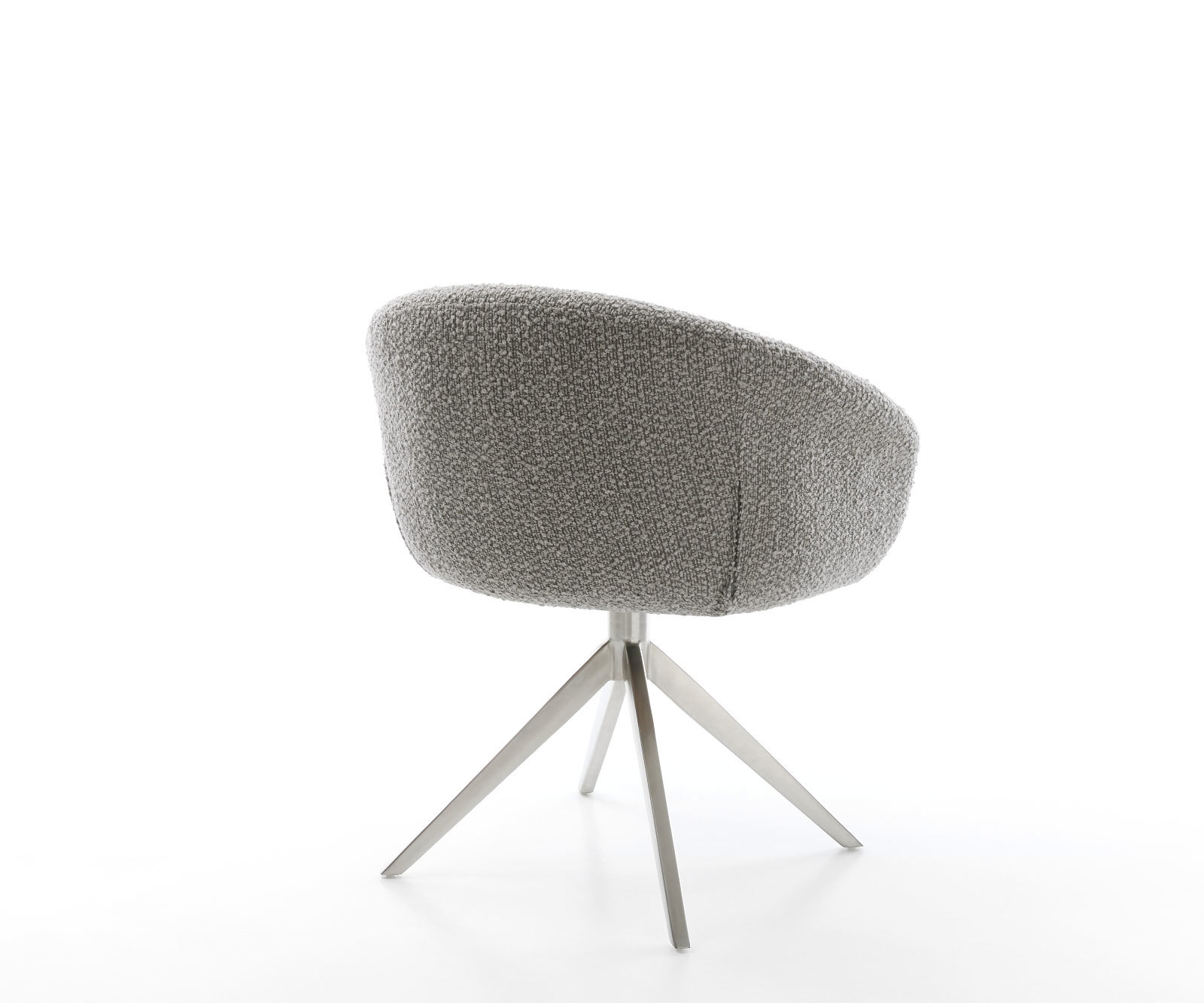 Étkezőszék Vinka-Flex karfás bouclé ezüstszürke kereszt láb széles rozsdamentes acél 360° forgatható billenő zsákrugós