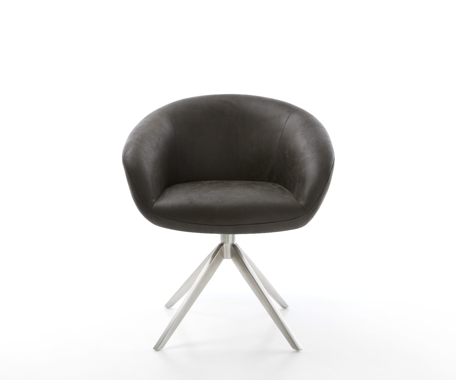 Étkezőszék Vinka-Flex karfás mikroszálas antracit vintage kereszt láb széles rozsdamentes acél 360° forgatható hintamechanizmus zsákrugós