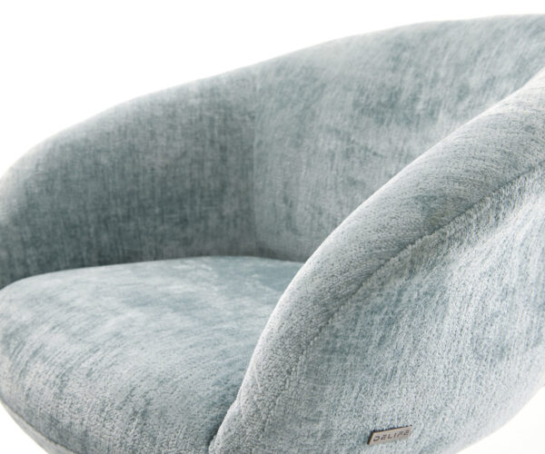 A kiváló minőségű chenille szövet és a stílusos design kombinációja igazi látványossággá teszi ezt az étkezőszéket. A szövet sima, szinte bársonyos felülete nemcsak elegáns megjelenést biztosít, hanem különösen könnyen tisztán tartható. Időtlen, lágy pasztellkék színével barátságos és hívogató hangulatot varázsol az étkeződbe.