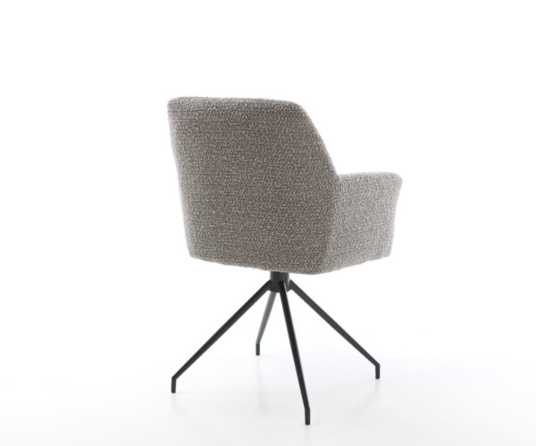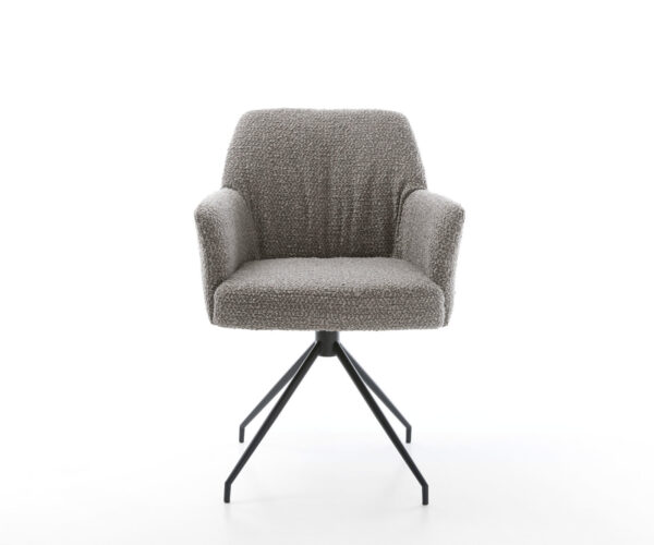 Étkezőszék Xana-Flex karfás bouclé ezüstszürke kúpos kereszt láb fekete 180° forgatható zsákrugós