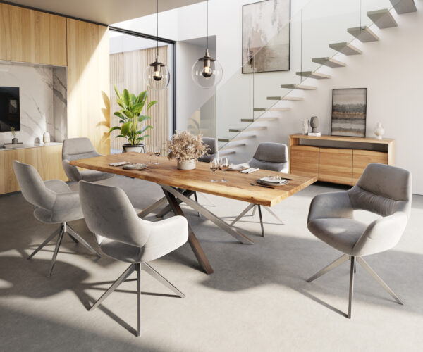 Az étkezőszék Yago-Flex egyedi ülőhéj dizájnjával és áttört háttámlájával lenyűgöz. Lágyan ívelt karfái és egy elegáns díszvarrás harmonikusan egészítik ki a megjelenést, így a Yago-Flex valódi figyelemfelkeltővé válik az étkezőben. A kiváló minőségű habszivacs és zsákrugós töltetű párnázat igazi ülési élményt nyújt.