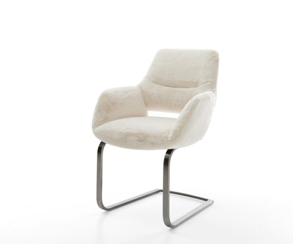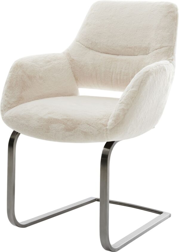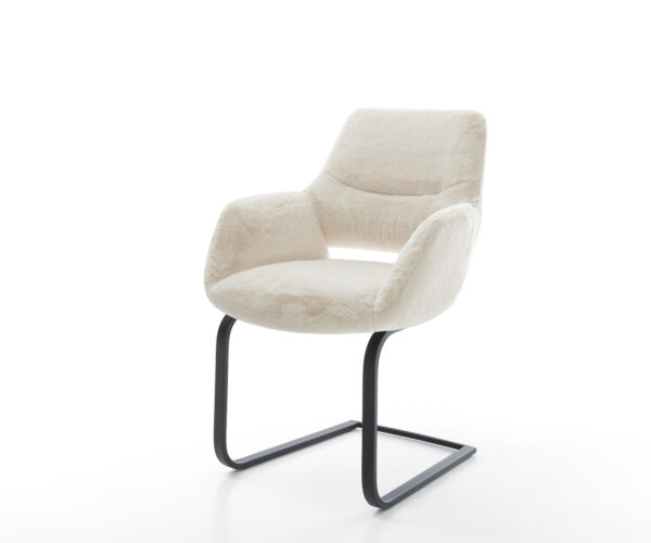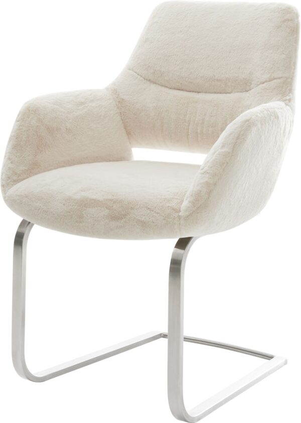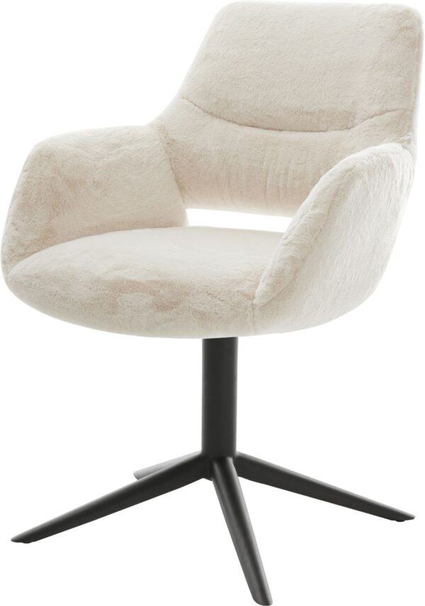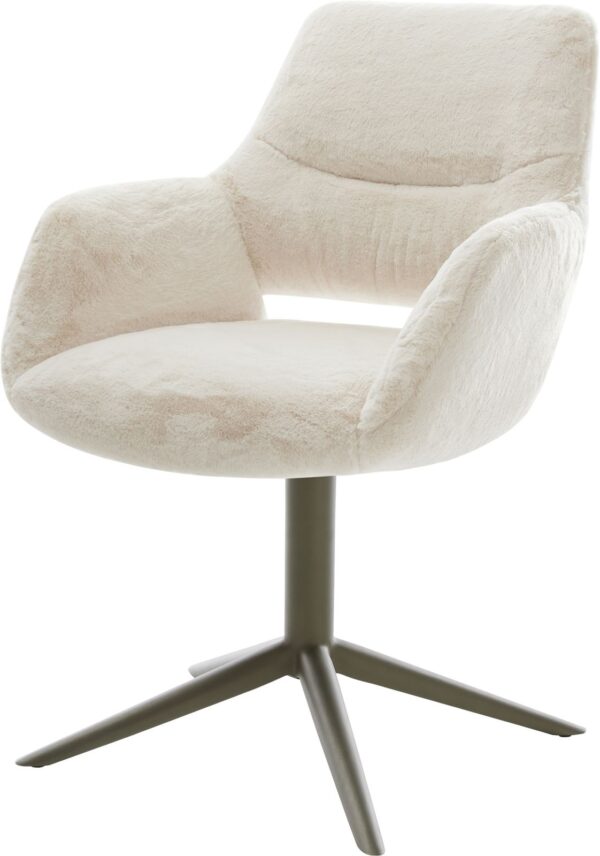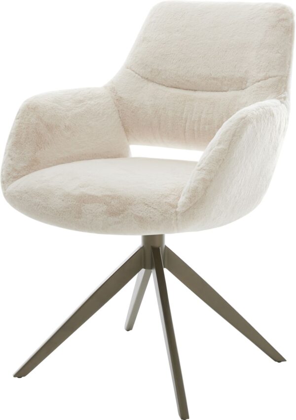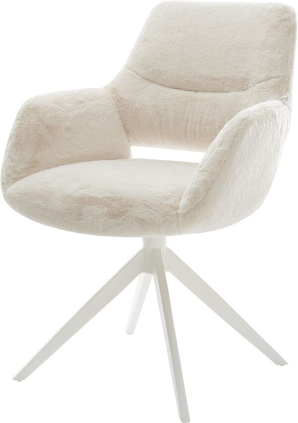 Étkezőszék Yago-Flex karfás plüss krémfehér kereszt láb fehér 360° forgatható billenő zsákrugó
