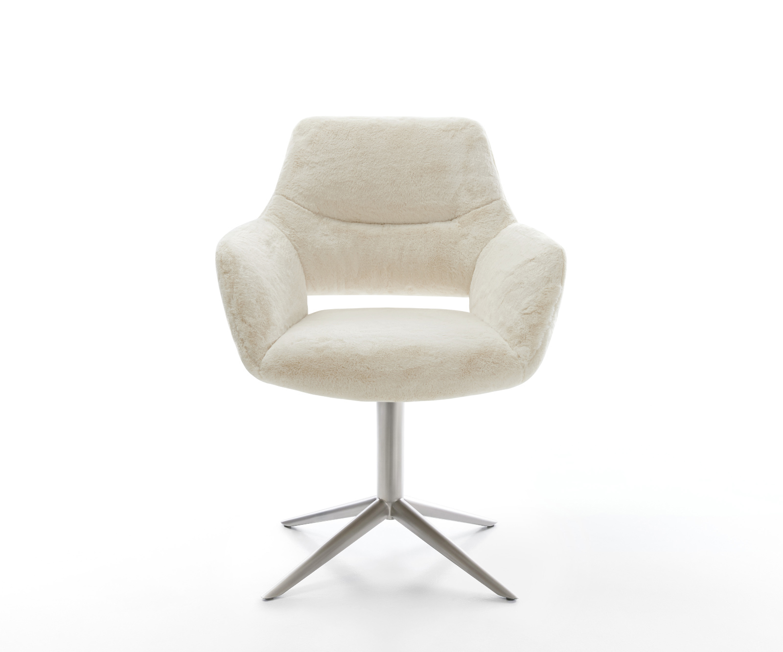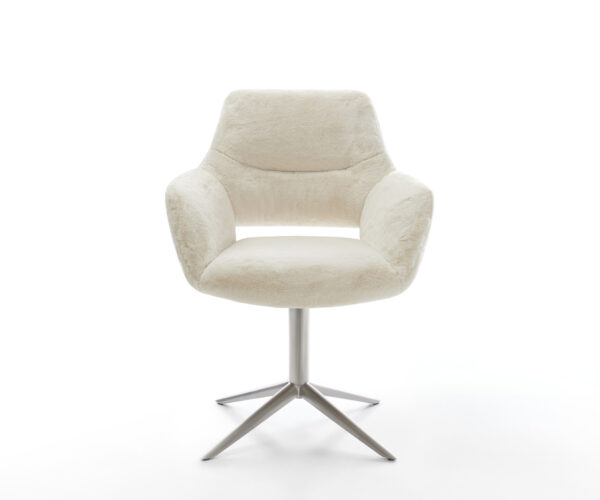 Étkezőszék Yago-Flex karfás plüss krémfehér kereszt láb rozsdamentes acél 360° forgatható billenő zsákrugós