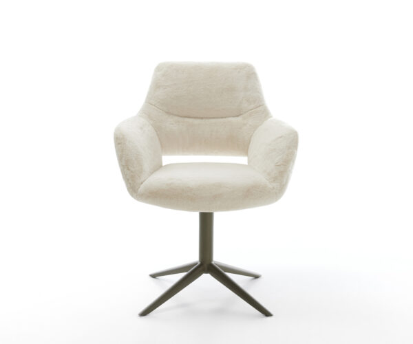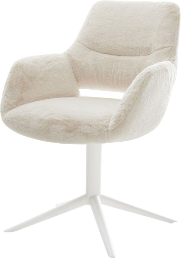 Étkezőszék Yago-Flex karfás plüss krémfehér kereszt láb titán színű hatvan fokban forgatható billenő zsákrugós