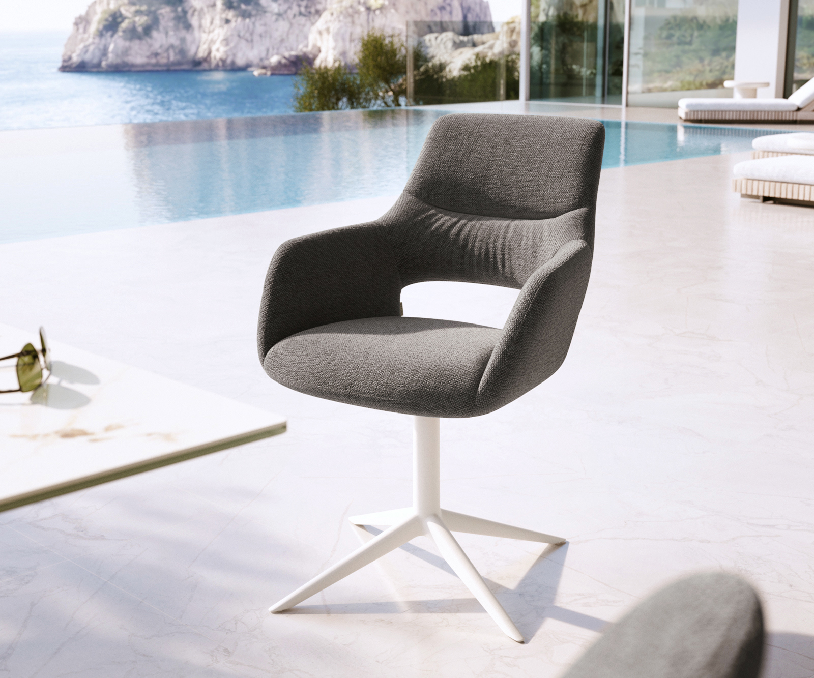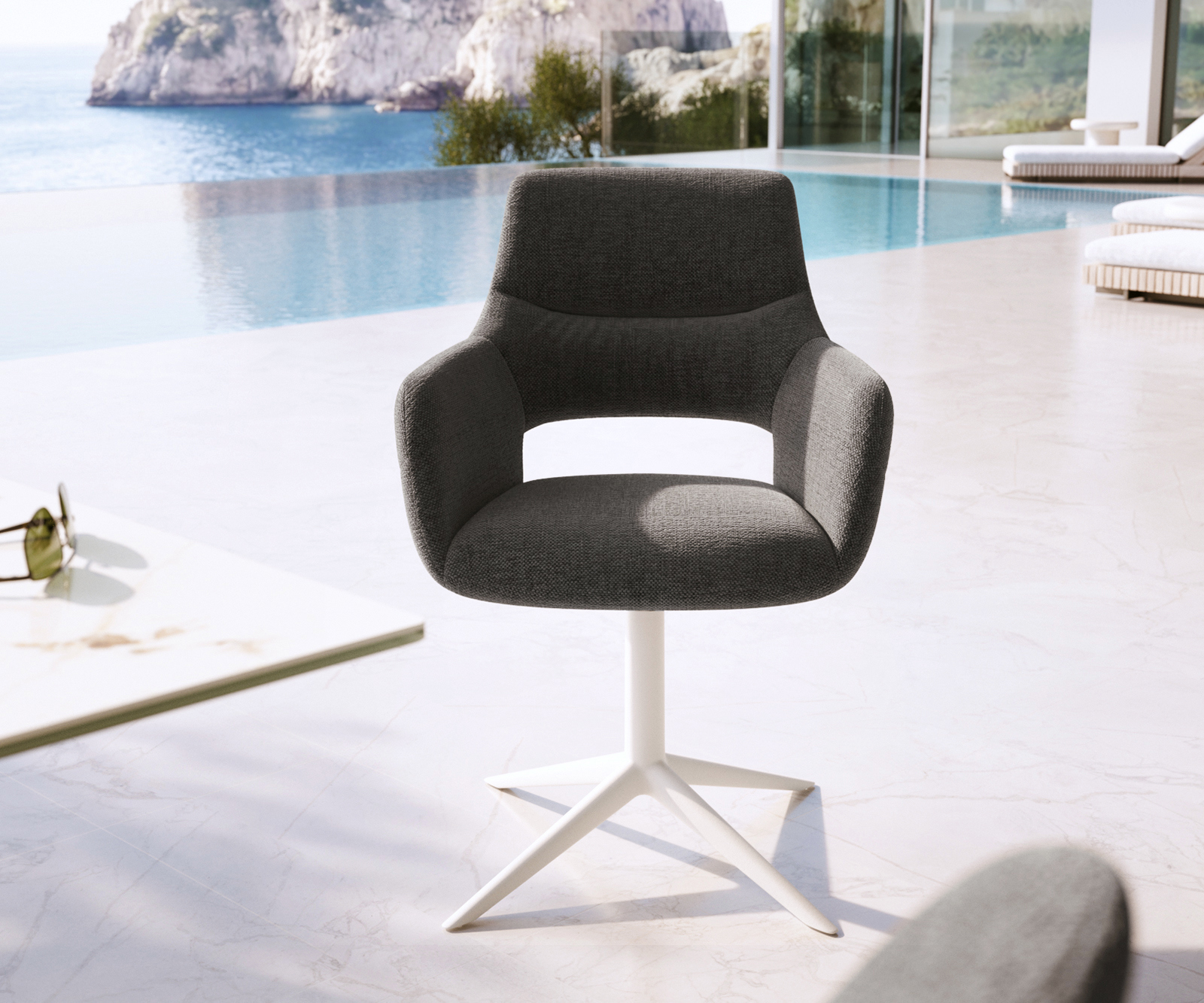 Étkezőszék Yago-Flex karfás texturált szövet grafit fehér kereszt láb 360° forgatható billenő