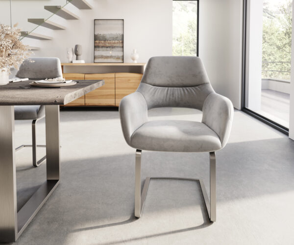 Étkezőszék Yago karfával, bársony szürke – DELIFE szék rendszer