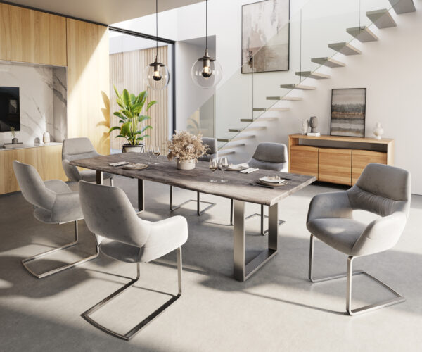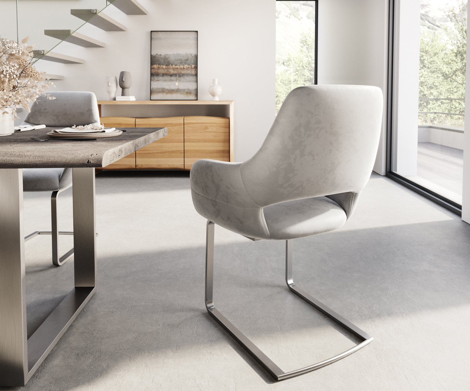 Étkezőszék Yago-Flex kárpitozott karfás bársony szürke étkezőszék lapos rozsdamentes acél zsákrugós