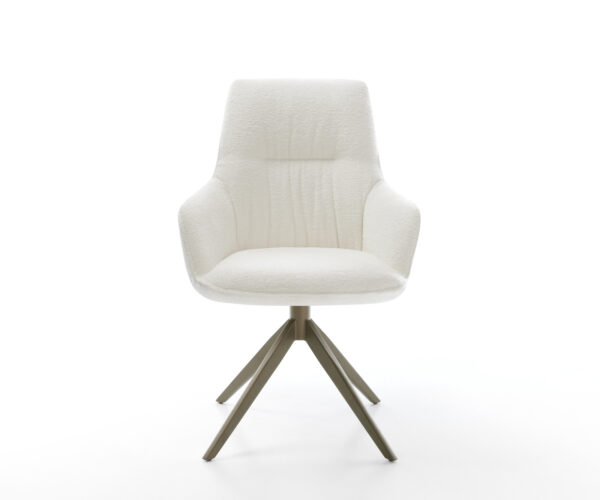 Étkezőszék Zelia-Flex karfás bouclé puha bézs kereszt láb széles titán színű 360° forgatható billenő zsákrugós matrac
