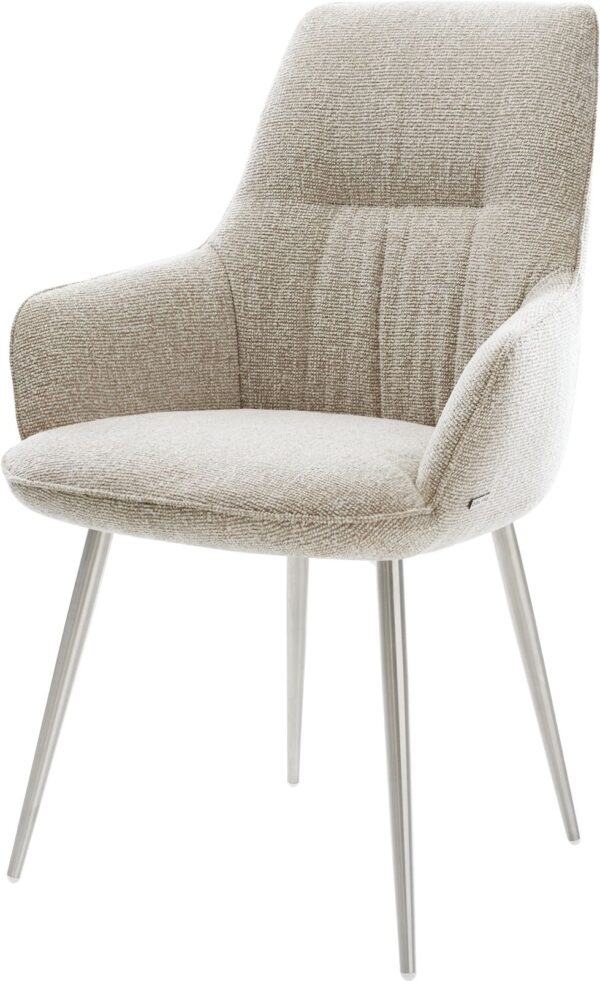 Kellemes kényelem a zsákrugós ülőfelépítésnek és a finoman ívelt karfáknak köszönhetően jellemzi a Zelia ülőhéjat. Egy steppelt varrás díszíti az ülőbútor háttámláját.