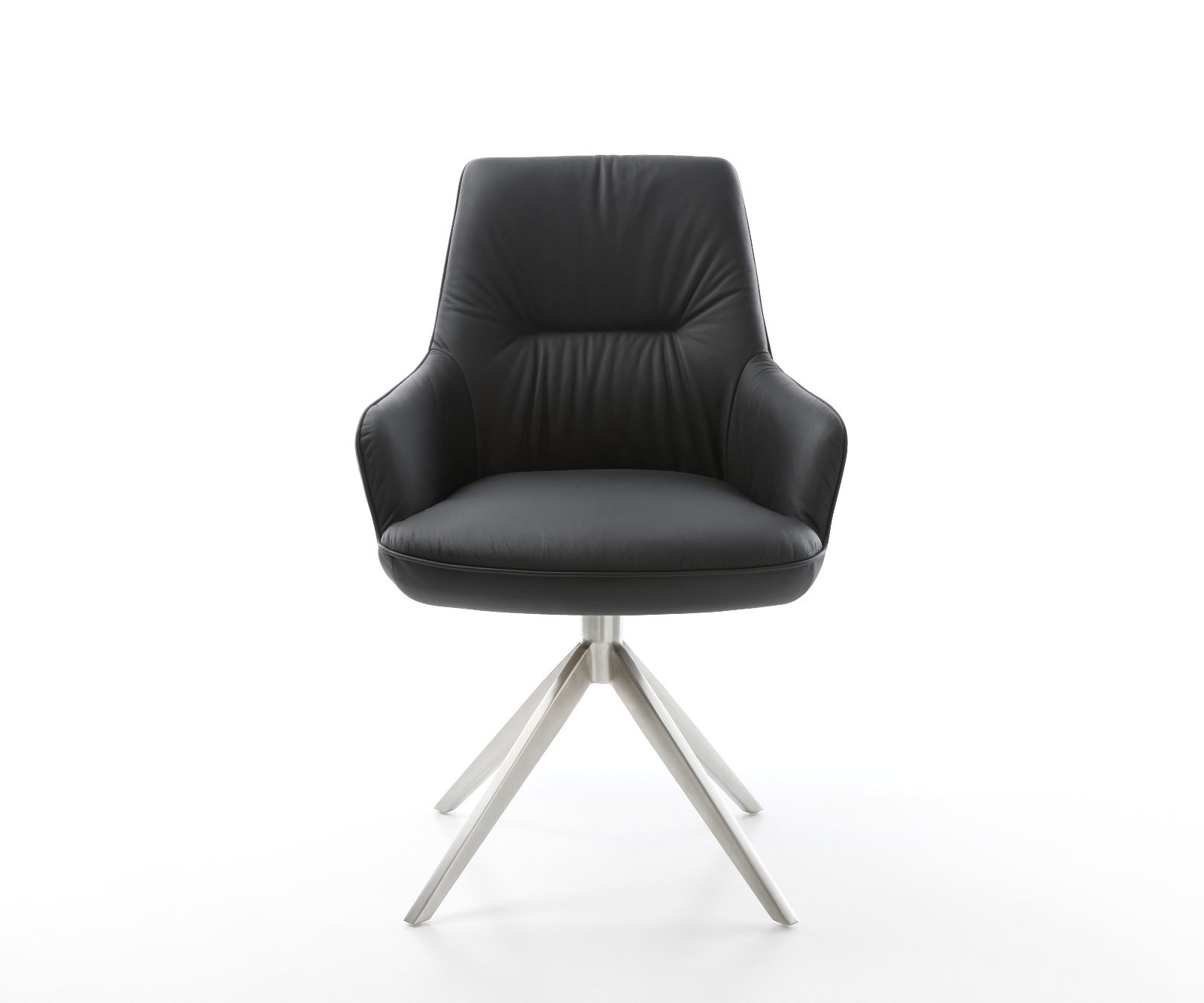 Étkezőszék Zelia-Flex karfás valódi bőr fekete széles rozsdamentes acél kereszt láb 360° forgatható hintamechanizmus zsákrugós
