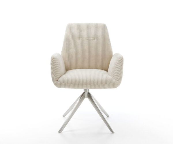 A széket egy divatos, meleg bézs árnyalatú kordbársony anyag borítja. Ez különösen kellemes tapintású, ugyanakkor rendkívül tartós és könnyen tisztán tartható.