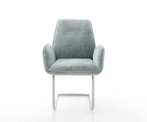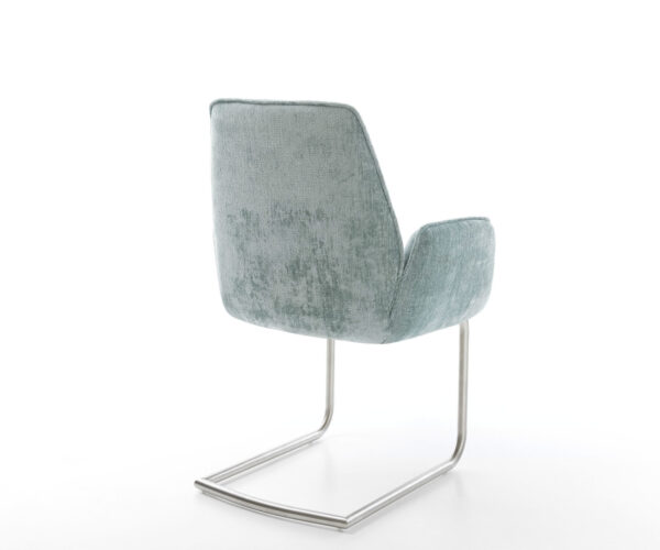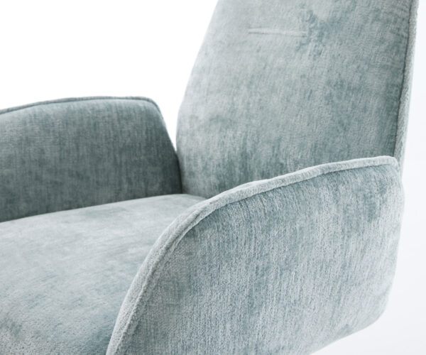 A kiváló minőségű chenille anyag és a stílusos design ötvözete valódi figyelemfelkeltővé teszi ezt a széket. Az anyag sima, szinte bársonyos felülete nemcsak elegáns megjelenést biztosít, hanem különösen könnyen tisztán tartható. Időtlen, lágy pasztellkék színével a szék barátságos és hívogató légkört teremt az étkezőben.