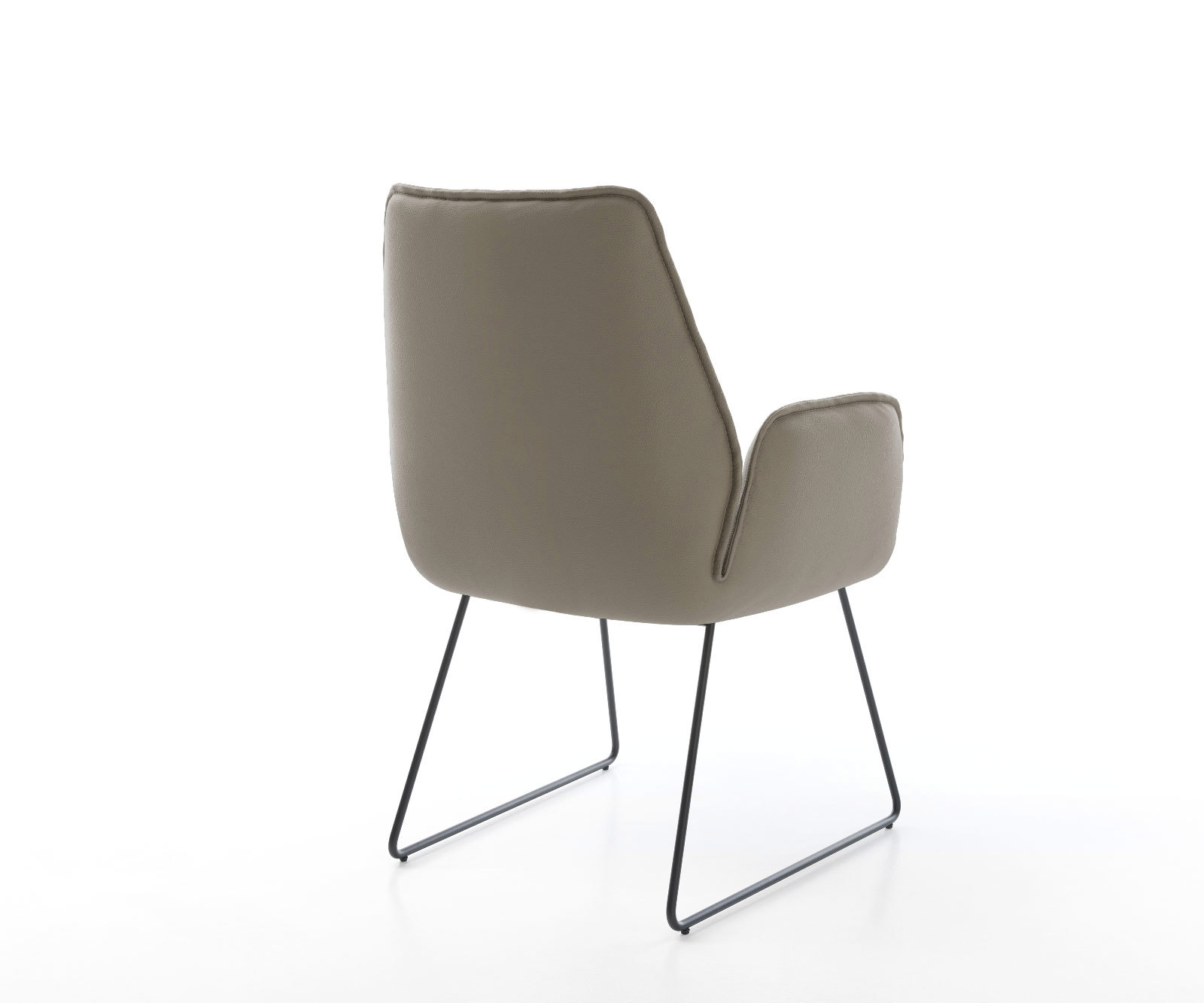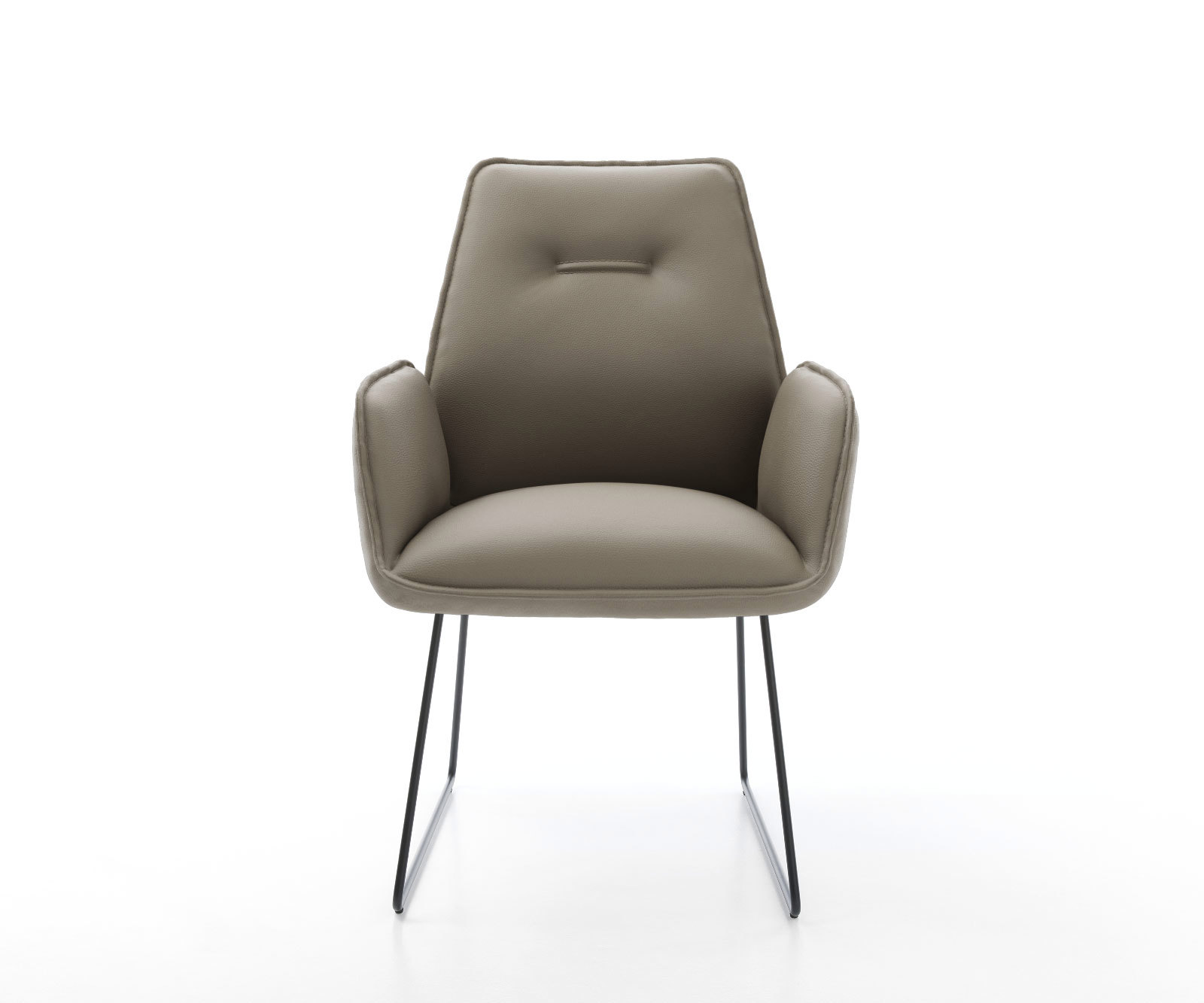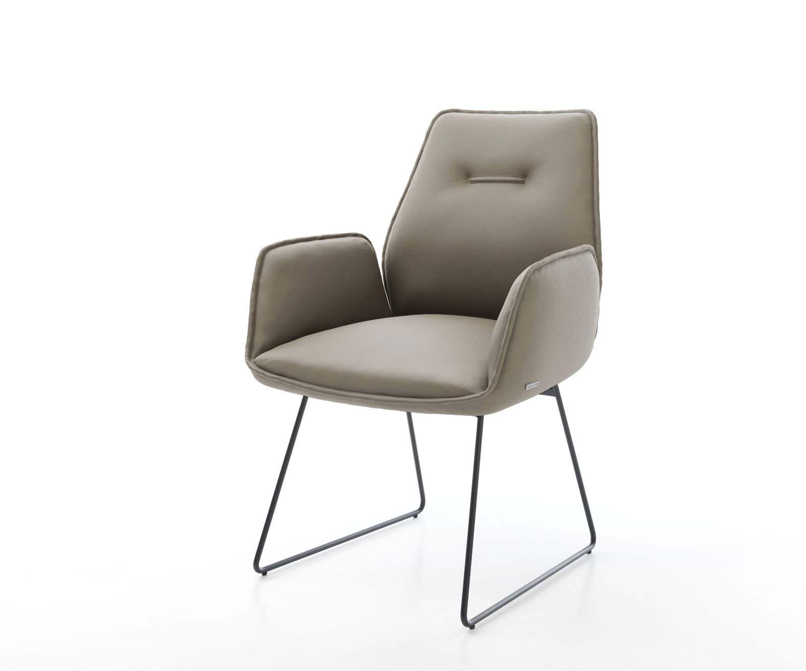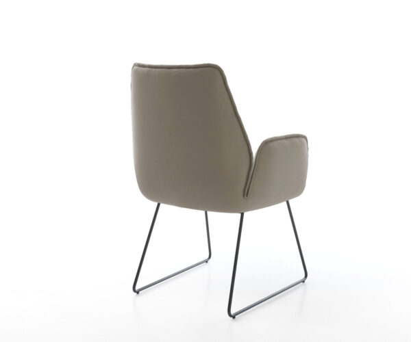 Kiváló minőségű, valódi bőr stílusos sötét bézs (schlamm) árnyalatban, amely szürke-barna árnyalatokkal tűnik ki, valódi különlegességgé varázsolja az étkezőszéket, és kifinomult, elegáns hangulatot kölcsönöz az étkeződnek.