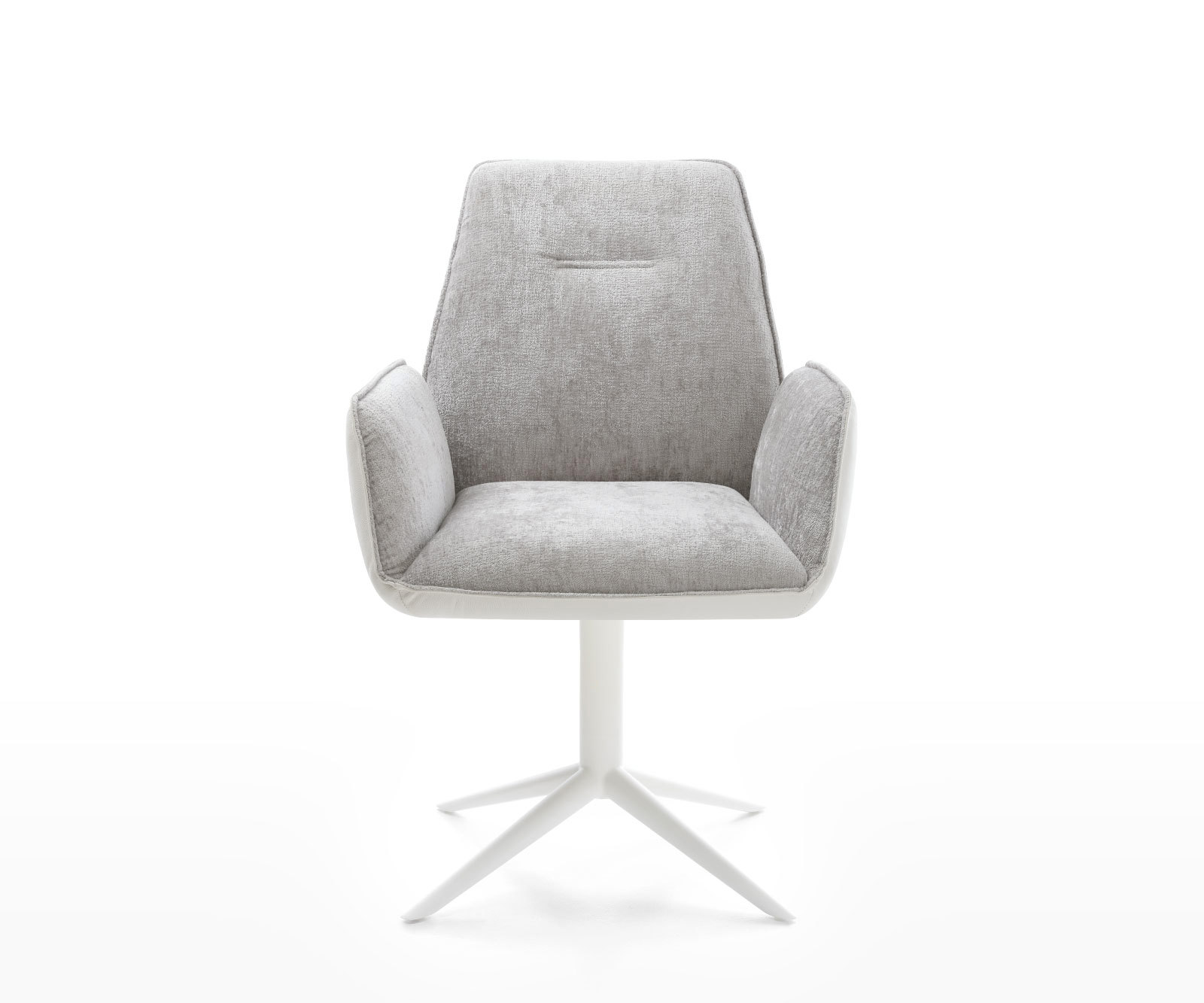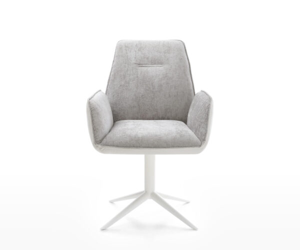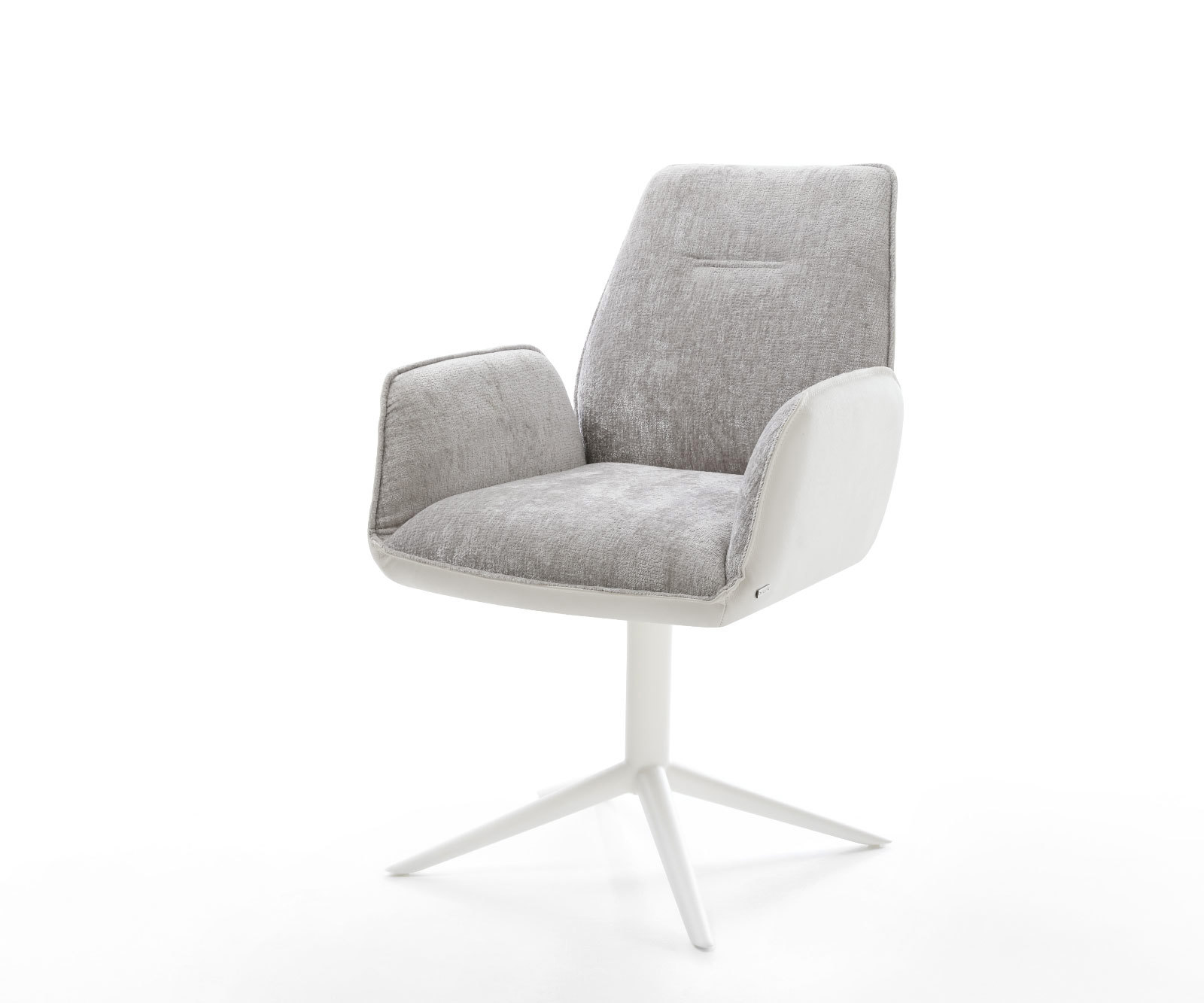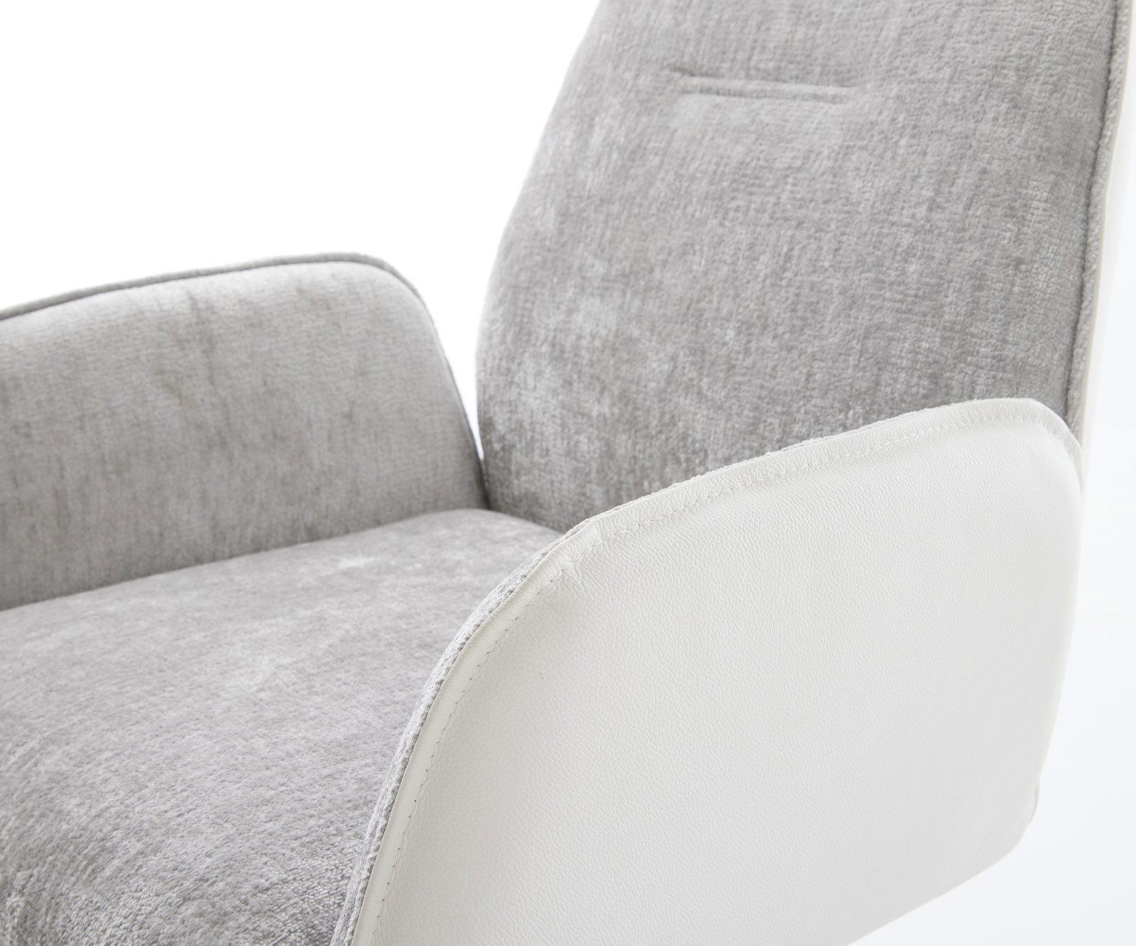 Étkezőszék Zoa-Flex vegyes anyag valódi bőr fehér ezüstszürke fehér láb 360° forgatható billenő zsákrugós matrac