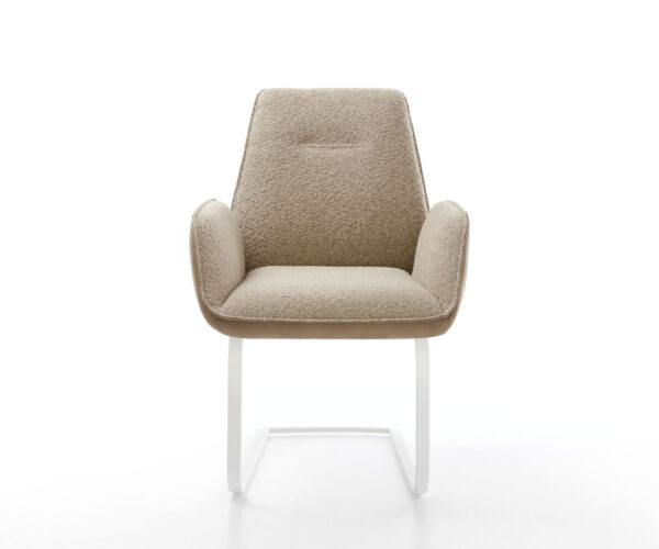 Egy izgalmas anyagkombináció, melynek külső oldala mikroszálas, belső része pedig bouclé anyagból készült, valódi must-have étkezőszékké varázsolja bármely ízlésesen berendezett étkezőhelyiséget. A két anyag használata vizuálisan különösen vonzó, akár egyedül, akár ülőgarnitúraként alkalmazva.